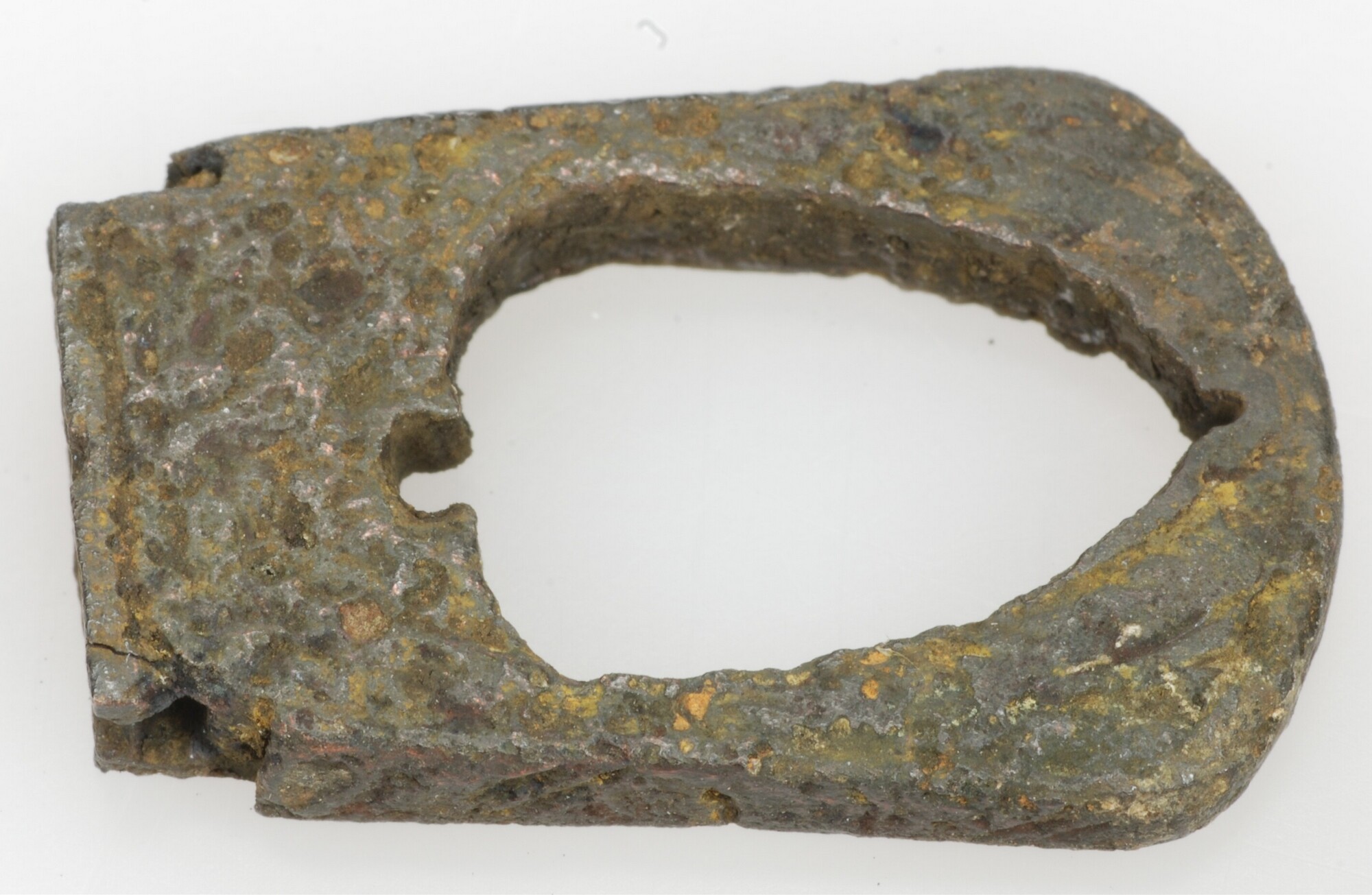 Mesheftbekroning; uitsparing in het midden in de vorm van een vrucht en een los bijbehorend vierkant fragment