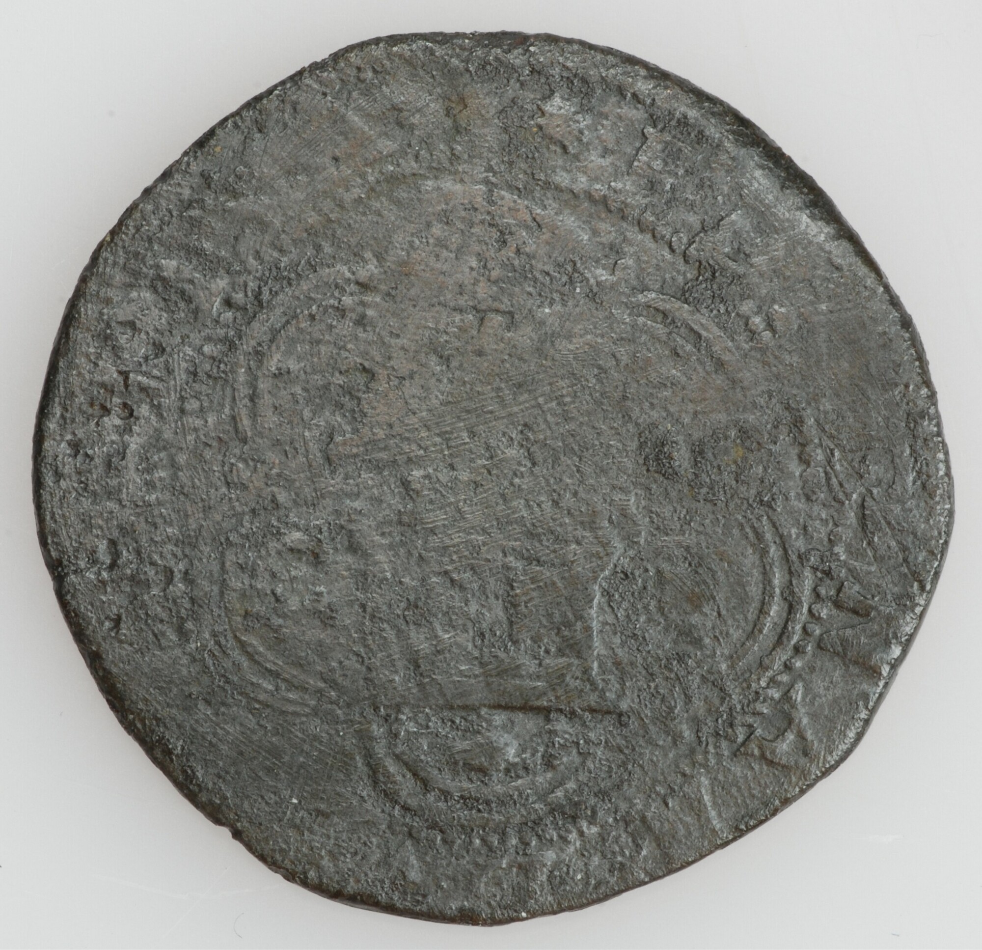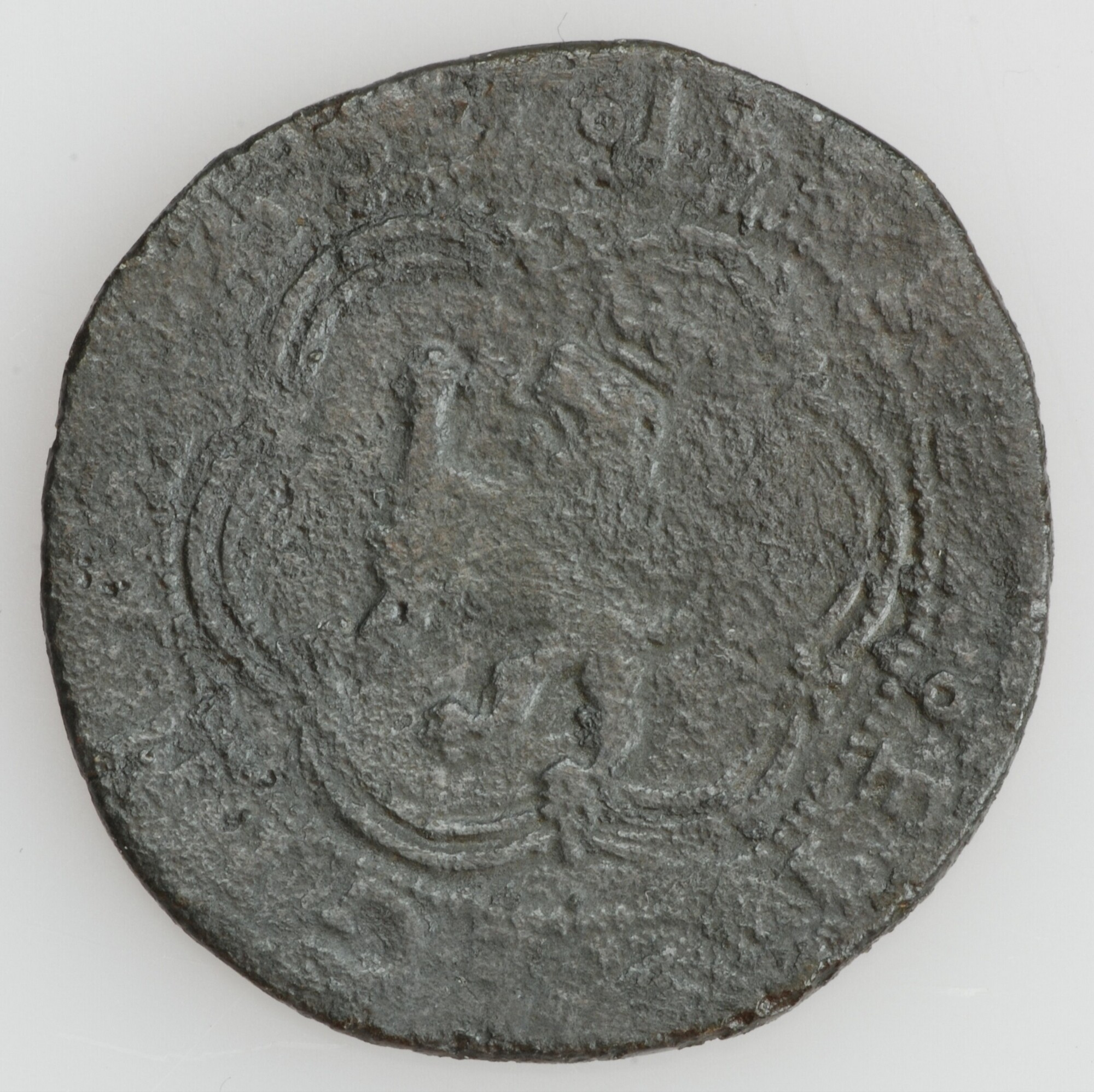 Spaanse 4 MARAVEDIS (Isabel I & Fernando V); vz.: gekroonde leeuw naar links binnen cirkel en randtekst REX.ET.REGINA.CAST.LEG; kz.: kasteel binnen cirkel; gewicht: 8.22 gram