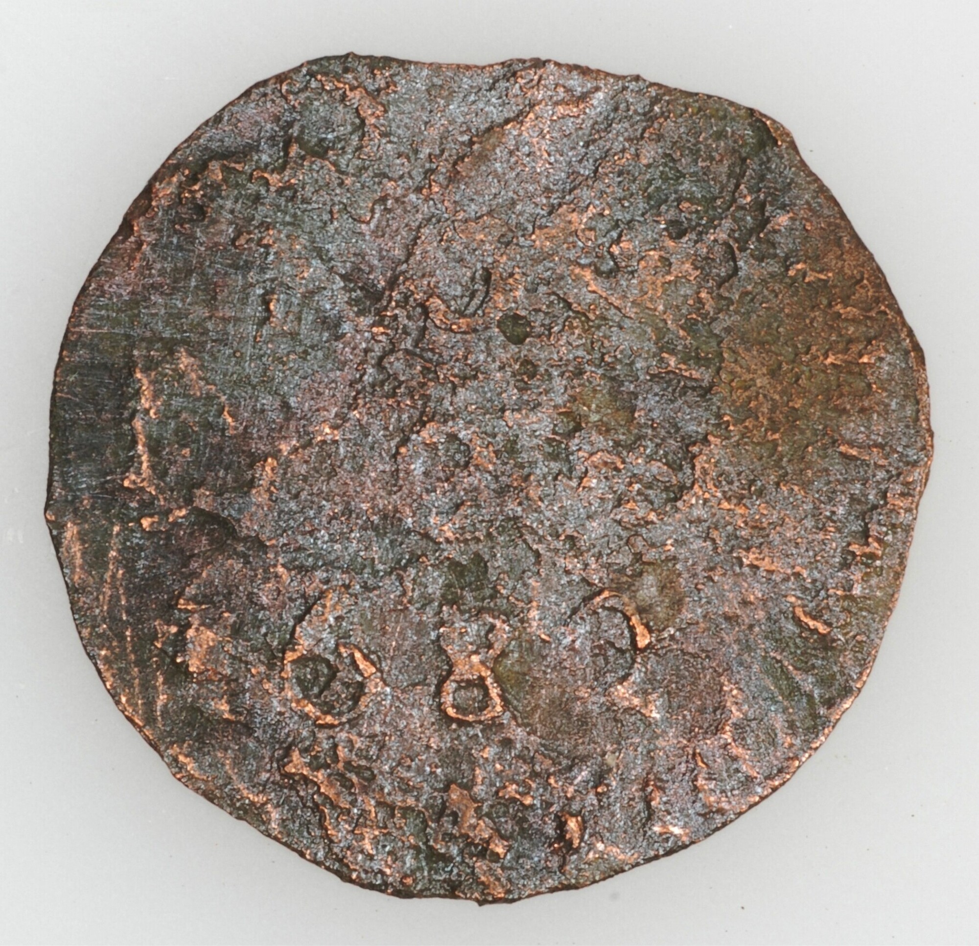 Duit; Groningen en Ommeland provincie; (1581-1795); vz.: GRON. ET.OML in twee regels met daaronder het jaartal 1680; kz.: Gekroond wapenschild van de Groninger Ommelanden; gewicht: 1.15 gram