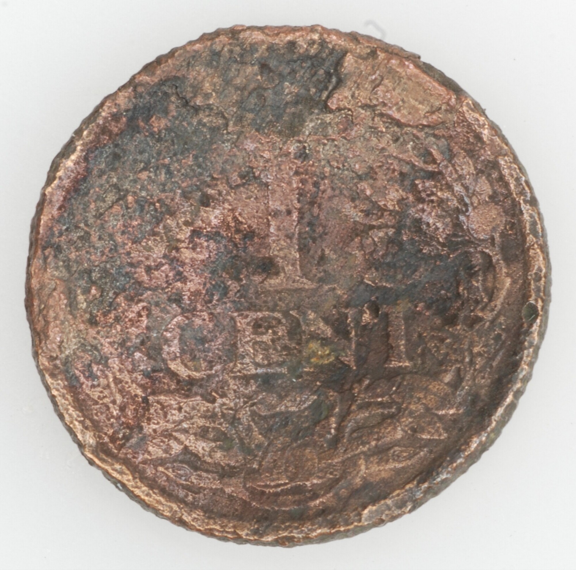 Cent; Nederland Koninkrijk (1813-heden); Wilhelmina (1890-1948); vz.: binnen een krans van twee samengebonden oranjetakken in twee regels: 1 / CENT; kz.: klimmende leeuw naar links met zwaard en pijlenbundel op een veld van azuur met zeventien blokken binnen parelcirkel, met omschrift (zeepaardje) KONINGRIJK DER NEDERLANDEN (mercuriusstaf) 1929; gewicht: 2.21 gram