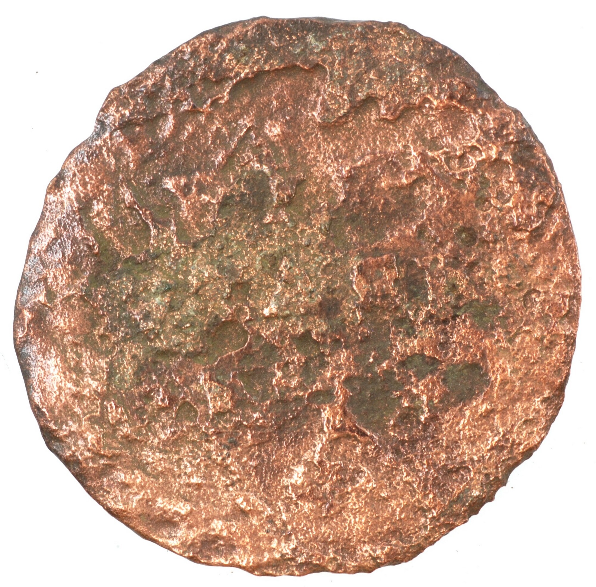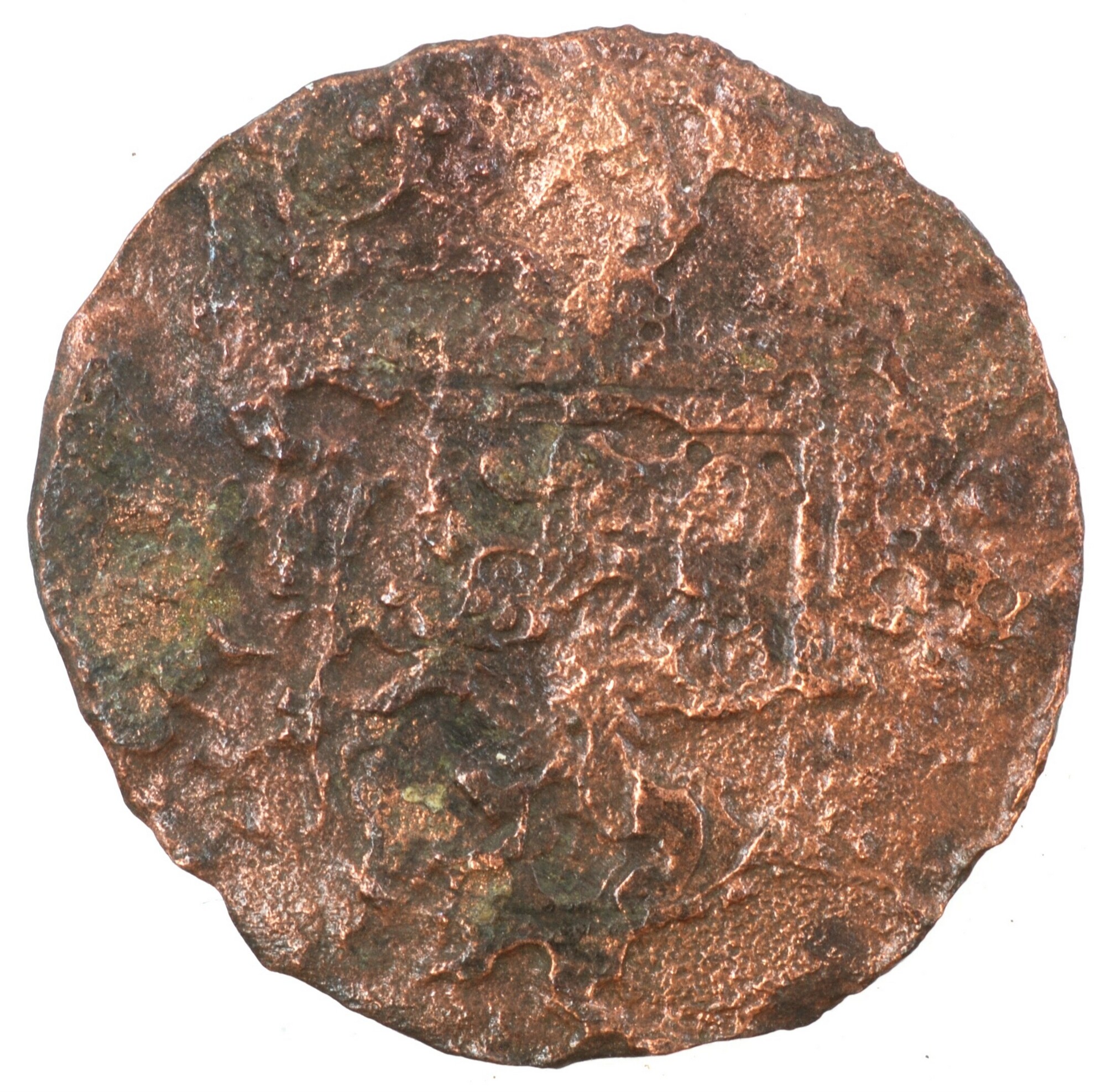 Duit Overijssel; vz.: Een tulpkrans (niet duidelijk zichtbaar) met daarin de tekst TRAS ISVLA .NIA. in drie regels; kz.: Gekroond wapen van Overijssel met klauwende leeuw naar links; gewicht: 1.46 gram