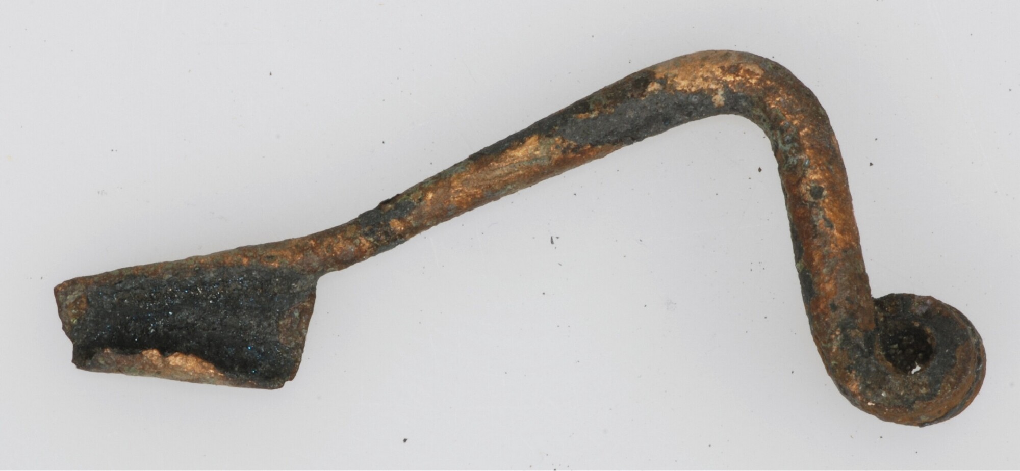 Draadfibula; type als vnr 75; de naald ontbreekt. Met hoekige beugel