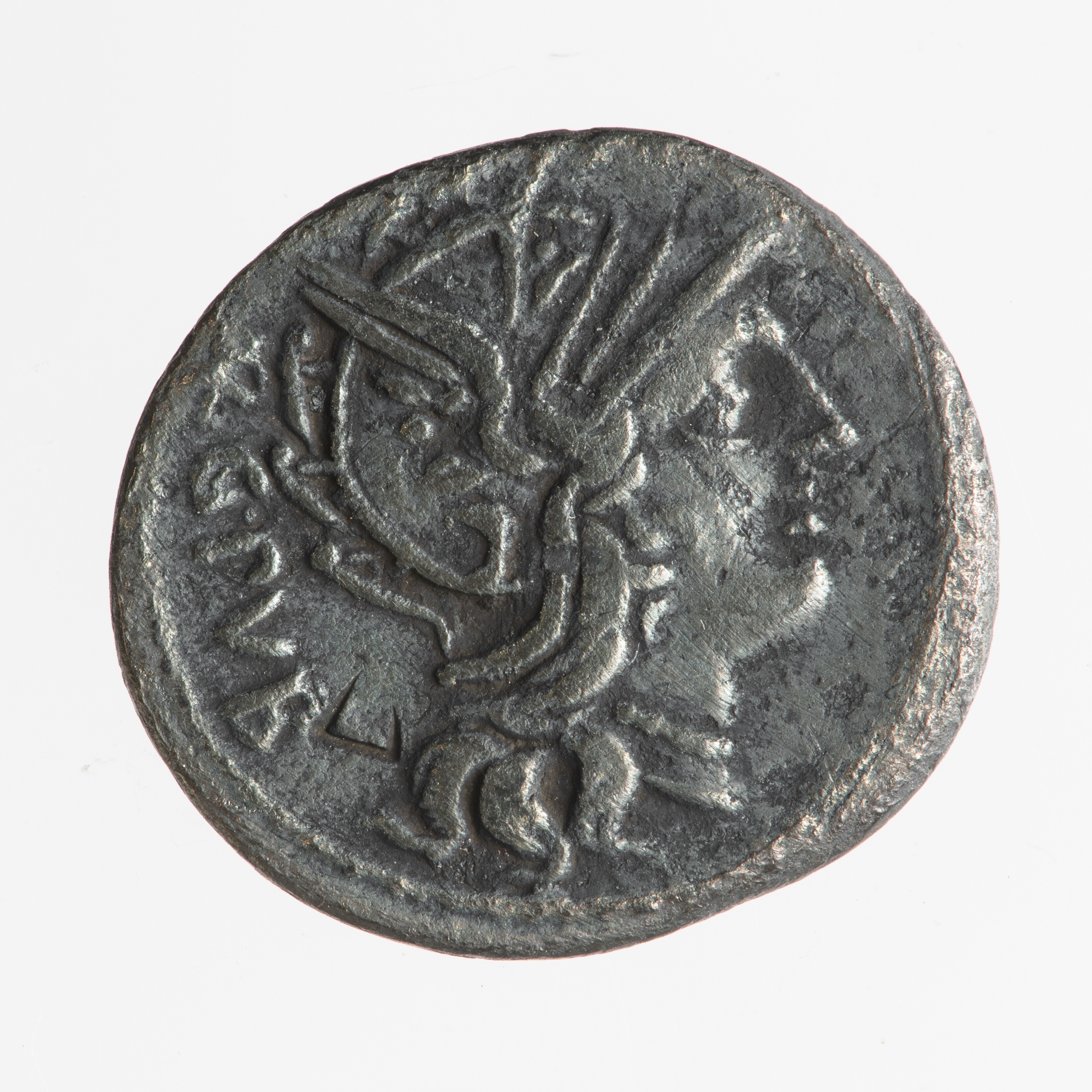 Denarius L. Sentius; vz.: kop van Roma naar rechts met omschrift ''ARG.PVB". controlemerk achter haar hoofd; kz.: Jupiter met scepter en bliksemschichten op quadriga naar rechts met omschrift ''L.SENTI.C.F''; muntplaats: Roma; gewicht: 3.48 gram
