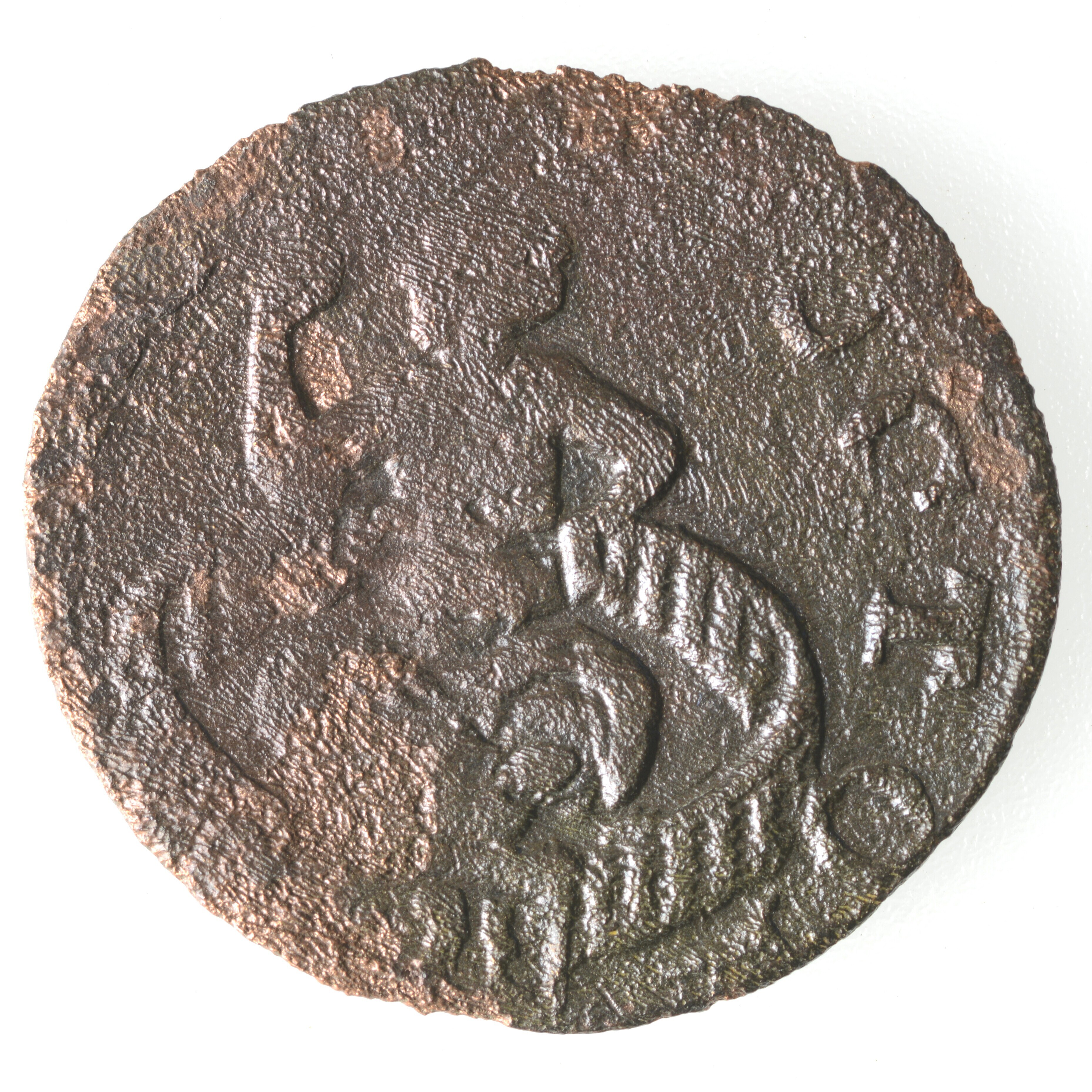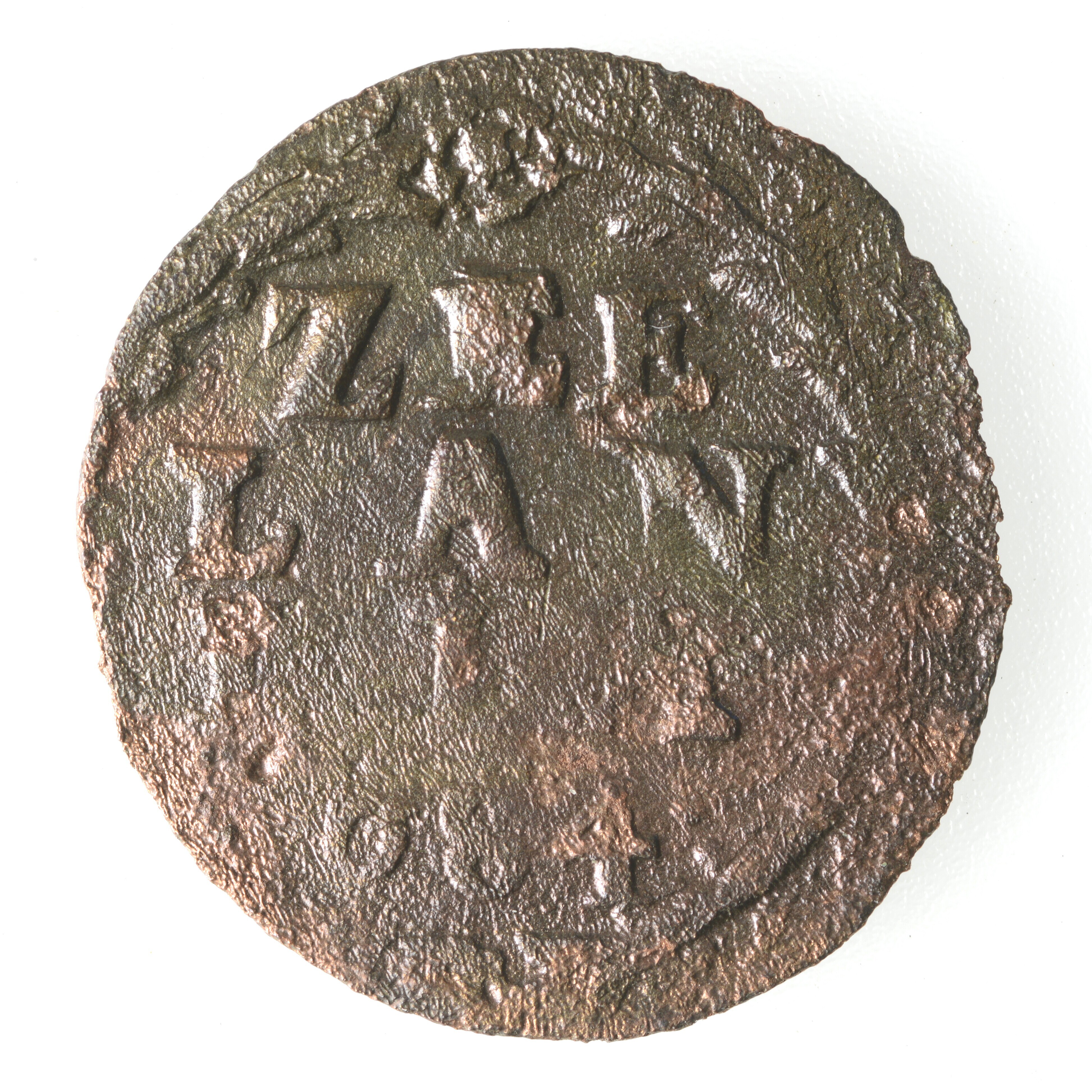 Duit; Zeeland Provincie (1581-1795); vz.: Een tulpkrans met daarin de tekst ZEE LAN DIA. in drie regels met daaronder het jaartal 1684; kz.: De Hollandse maagd zittende in een tuin. Zij wijst met haar rechterhand naar de hemel. Het hek van de tuin is een wapenschildje van Zeeland; gewicht: 1.05 gram
