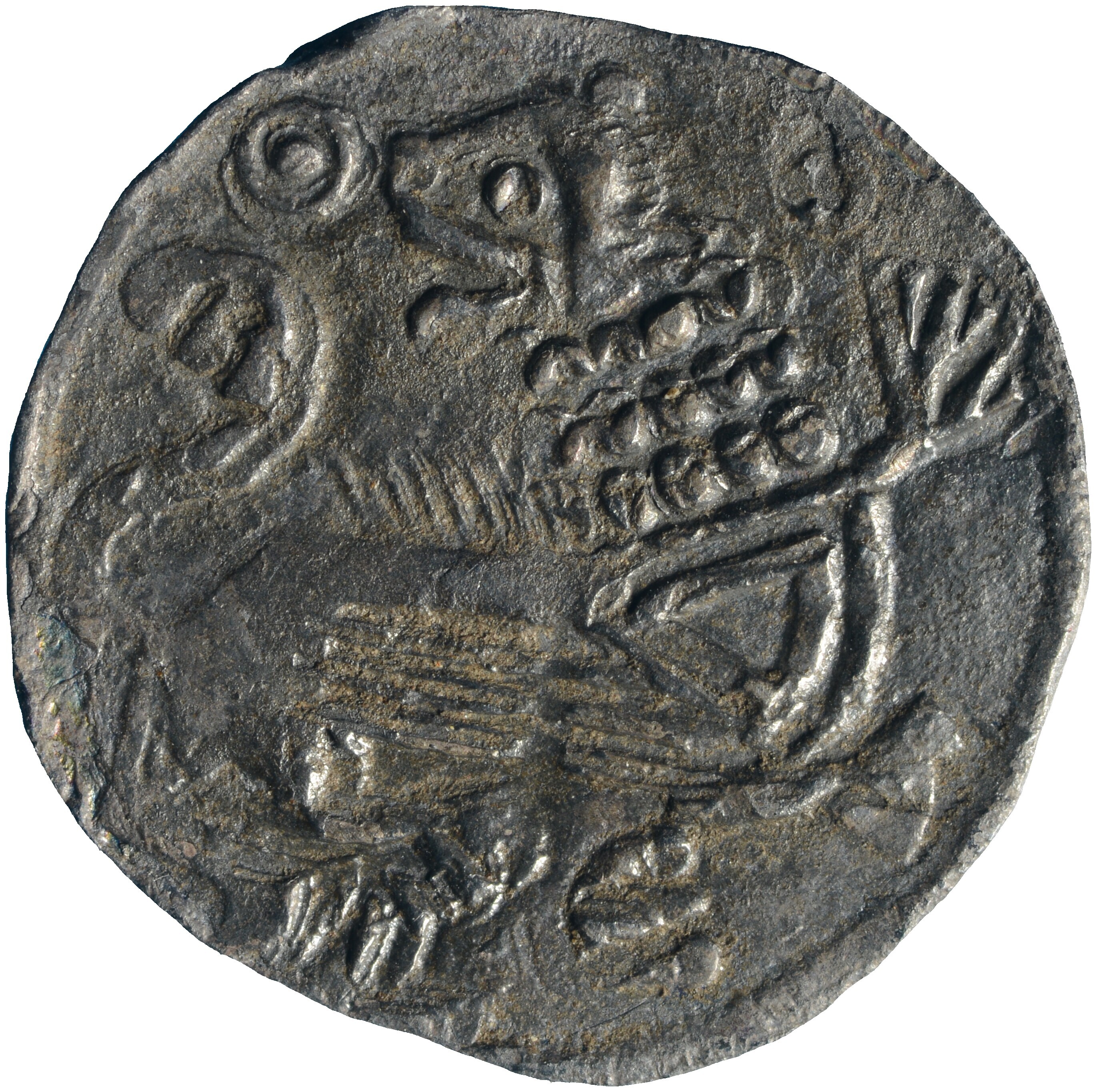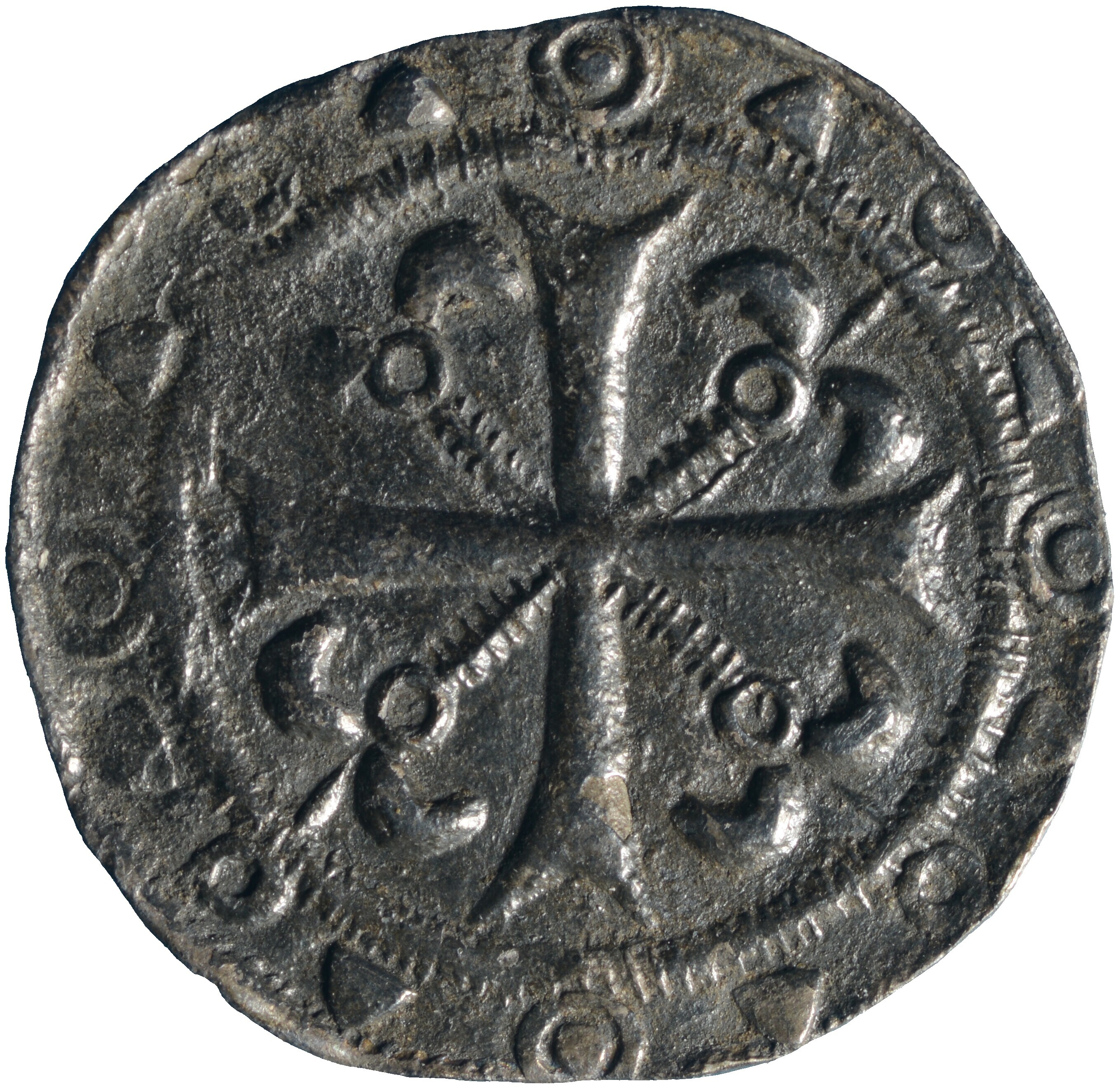 Penning; Holland Graafschap (1049-1581); Floris III (1157-1190); vz.: leeuw gaande naar rechts, omkijkend naar links naar cirkel met punt, langs de rand [L] - E - O; kz.: kort gevorkt kruis met in de kwadranten beurtelings lelies binnen parelcirkel en ornamentrand van driehoeken en ringen; muntplaats: onbekend; gewicht: 0.60 gram; referentie: Hengel (1993) A3, Hengel ...