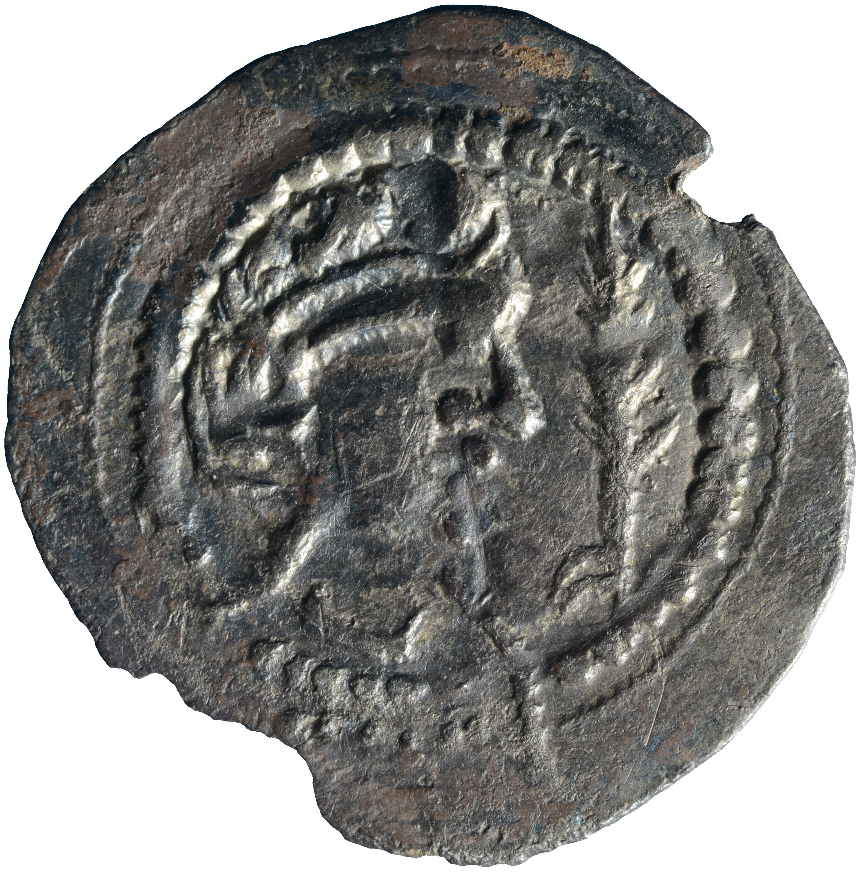 Penning; Holland Graafschap (1049-1581); Floris III (1157-1190); vz.: buste met gravenmuts naar rechts, vergezeld van een palmtak binnen parelcirkel en ornamentrand bestaand uit driehoeken en cirkels; kz.: kort gevorkt kruis met in de kwadranten beurtelings een S en een ster binnen parelcirkel en ornamentrand bestaand uit driehoeken en cirkels; muntplaats: Stavoren?; gewicht: 0.51 gram; uiterst ...