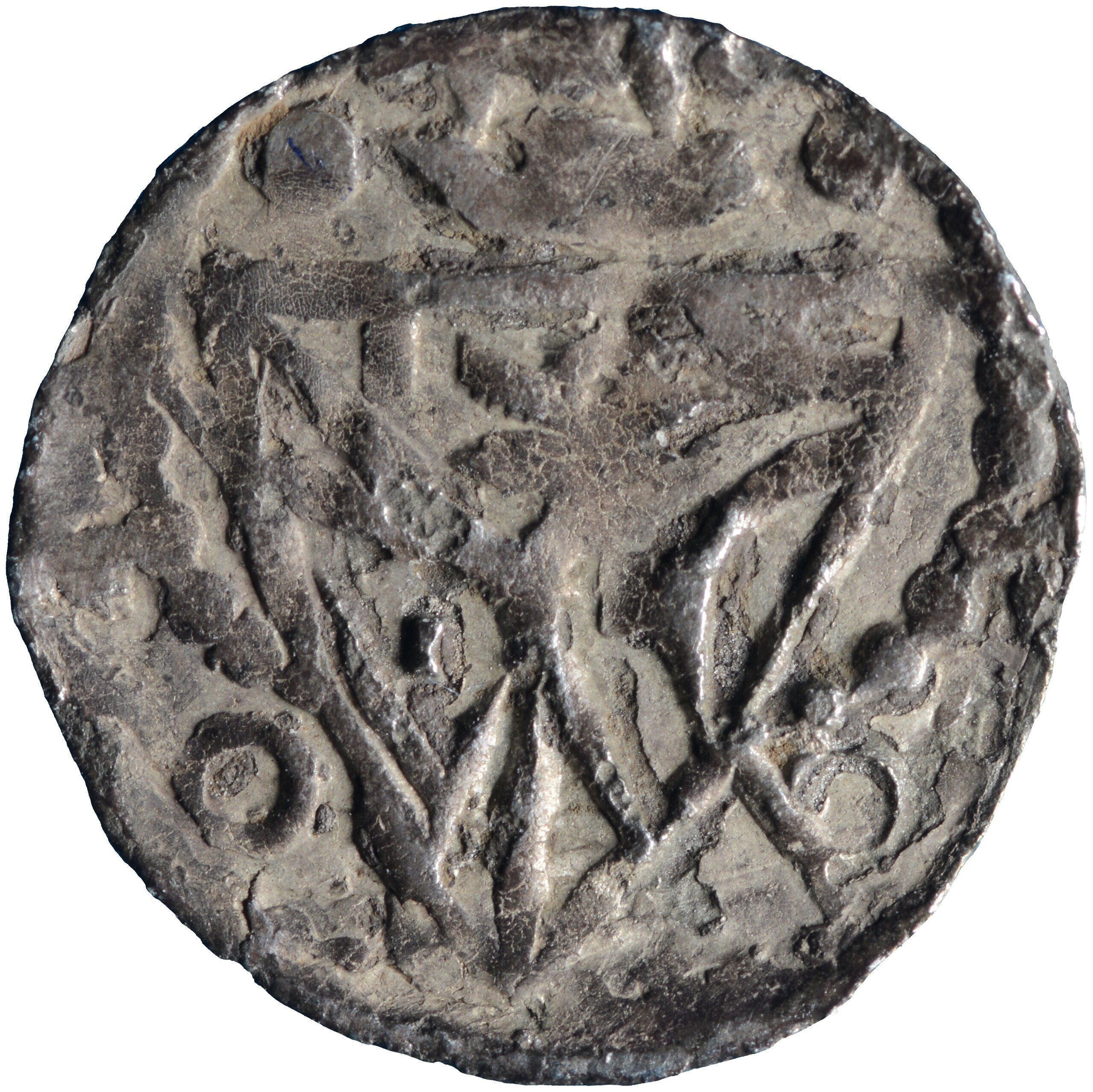 Penning; Gelre Graafschap (1046-1339); Otto van Gelre (1229-1271); vz.: hoofd van de graaf boven Gelders wapenschild binnen parelcirkel, met omschrift [OTTO] C - O[MES]; kz.: dubbelkoppige adelaar binnen parelcirkel, met omschrift A[R]NE - M[ES]; muntplaats: Arnhem; gewicht: 0.46 gram; referentie: vdChijs I.5-6