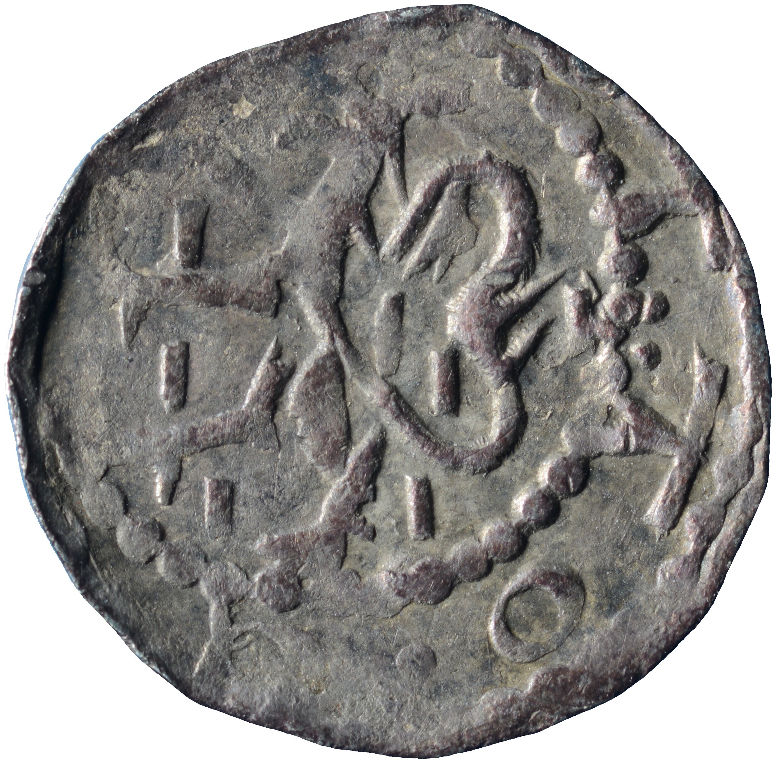 Penning; Gelre Graafschap (1046-1339); Otto van Gelre (1229-1271); vz.: Gelderse leeuw met blokken in het veld binnen parelcirkel, met omschrift [+O]TTO•C - O[MES]; kz.: enkelkoppige adelaar binnen parelcirkel, met omschrift C[VMAGE]N•CI; muntplaats: Nijmegen; gewicht: 0.48 gram; referentie: vdChijs I.7