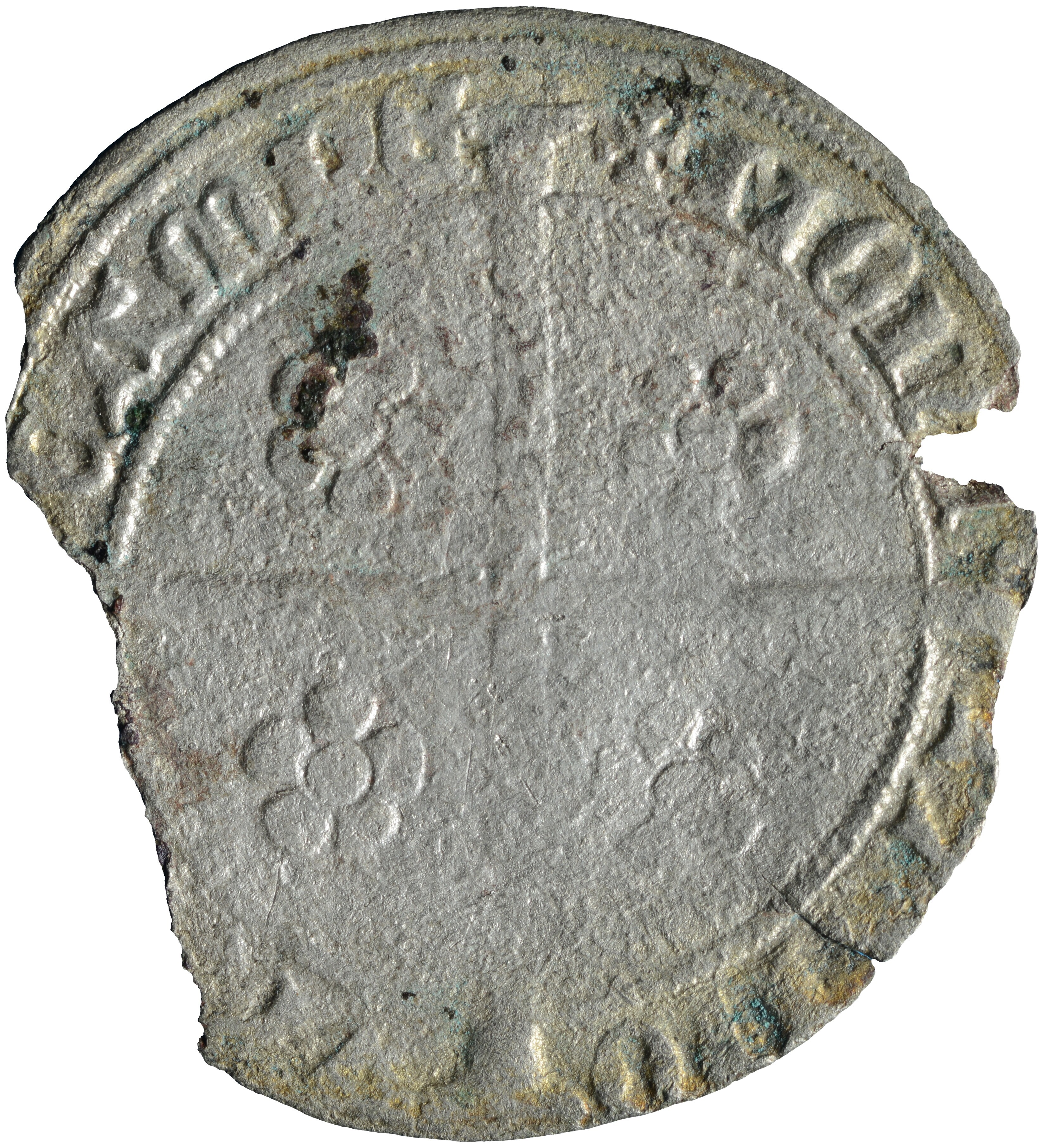 Kwart groot; Overijsselse Steden: Kampen; vz.: stadswapen binnen zespas en parelcirkel, met omschrift [+]BENEDICT•QVI•VENIT•IN•NOM[E DNI]; kz.: lang gevoet kruis met rozetten in de kwadranten binnen parelcirkel, met omschrift +MONE / [T]A NO / V [A DE] / CAMPE; muntplaats: Kampen; zeer zeldzaam; gewicht: 0.95 gram; referentie: vdChijs XV-12. Overeenkomstige munten gepubliceerd door A. van Herwijnen ...