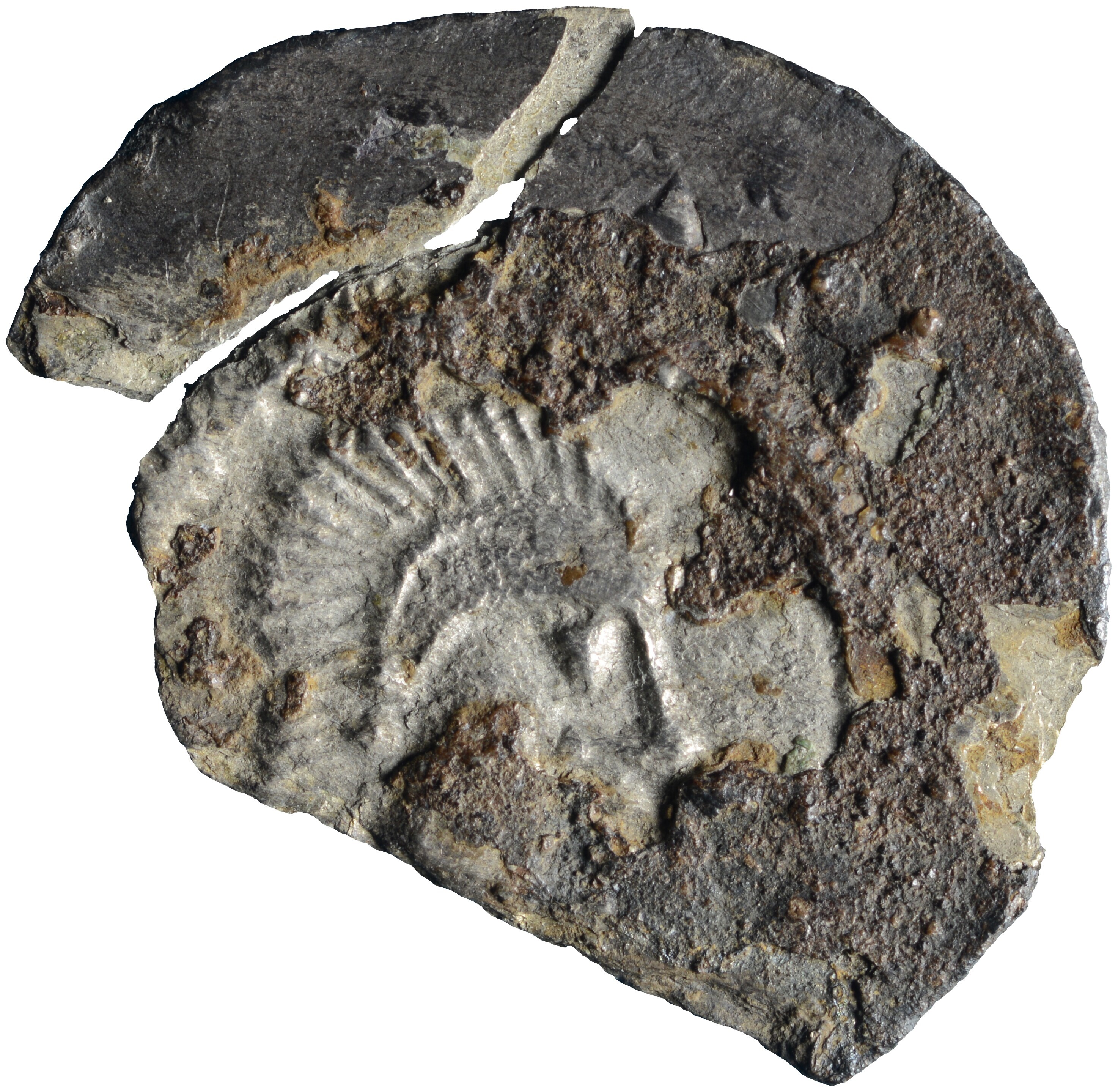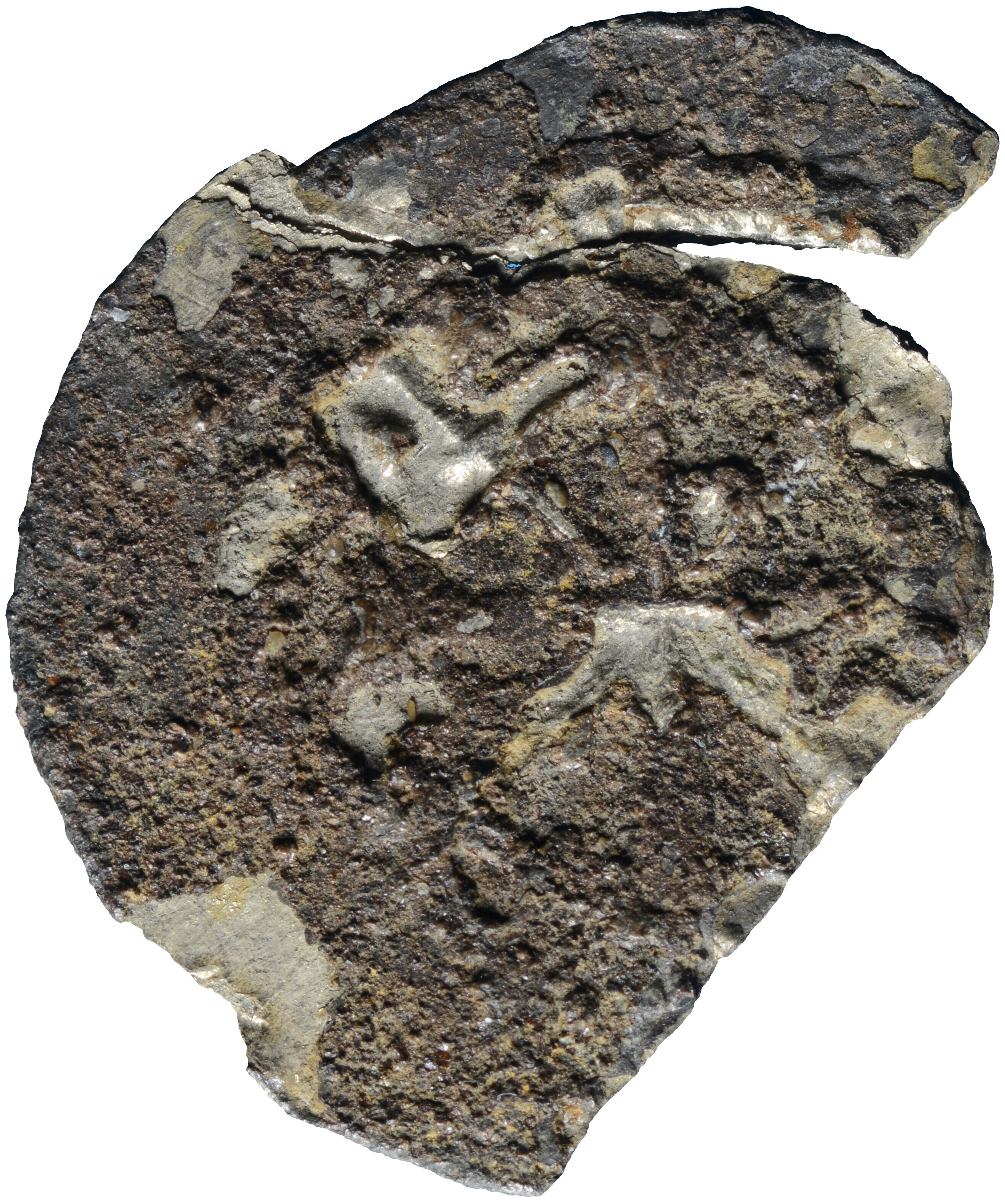 Penning; Holland Graafschap (1049-1581); Floris III (1157-1190); vz.: buste naar rechts met wild uitstaand haar binnen parelcirkel en ornamentrand bestaande uit driehoeken en cirkels; kz.: kort gevorkt kruis met gekruiste leliestaven met dwarsbalken binnen parelcirkel en ornamentrand bestaande uit driehoeken en cirkels; muntplaats: onbekend; gewicht: 0.37 gram; uiterst zeldzaam; referentie: Grolle 5.3.1a, Hengel (1998) C0.5; ...