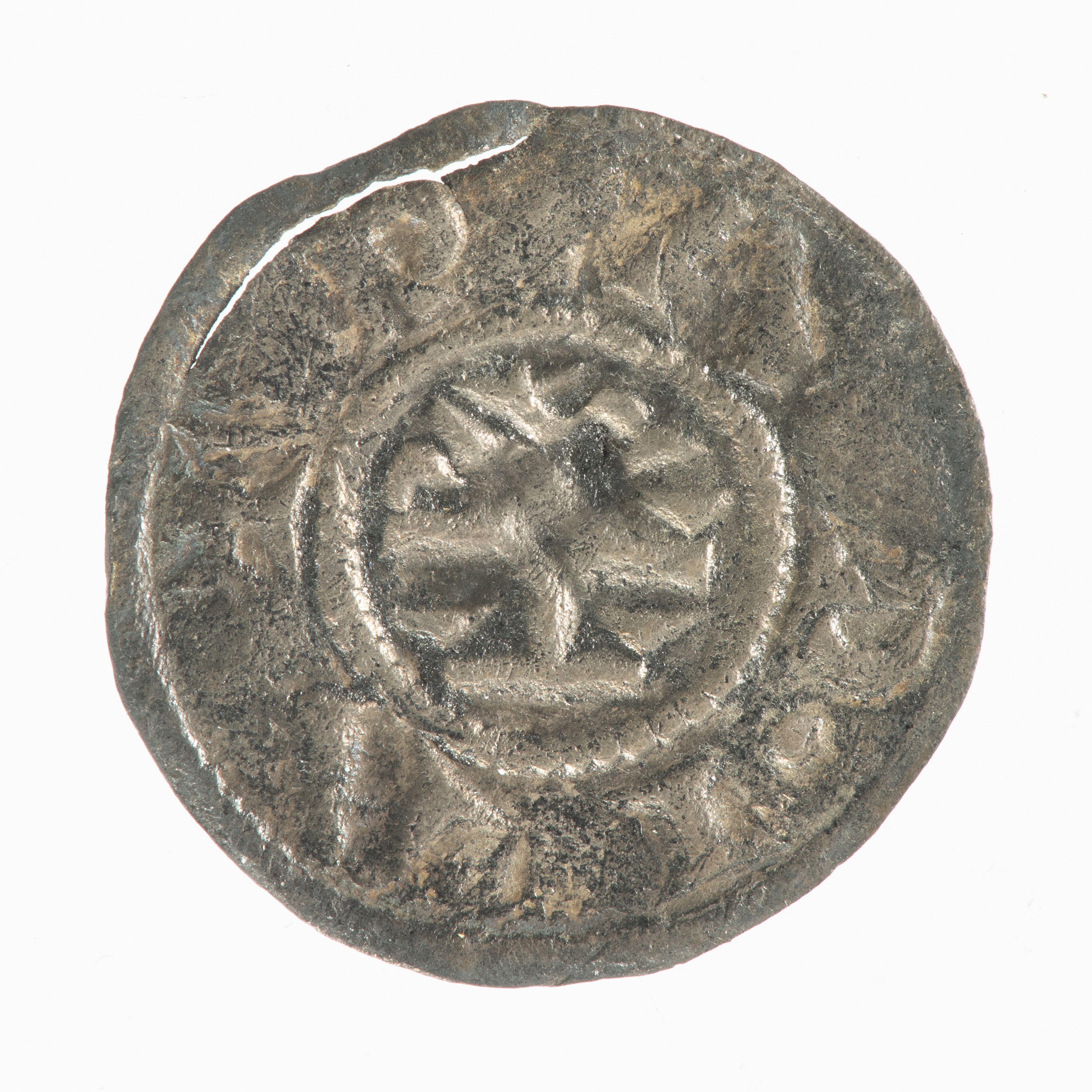 Denarius; Karolingische Rijk; Karel de Grote (768-814); vz.: Karolus-monogram binnen parelcirkel +CARLVS REX FR; kz.: kort gevoet kruis binnen parelcirkel, met omschrift +PAP•IA; muntplaats: Pavia; gewicht: 1.47 gram; zeer zeldzaam; referentie:, Morrison / Grunthal 207-210 var (de punt in PAPIA staat na de P; in Morrison / Grunthal staat de punt op andere plaatsen), Grierson ...
