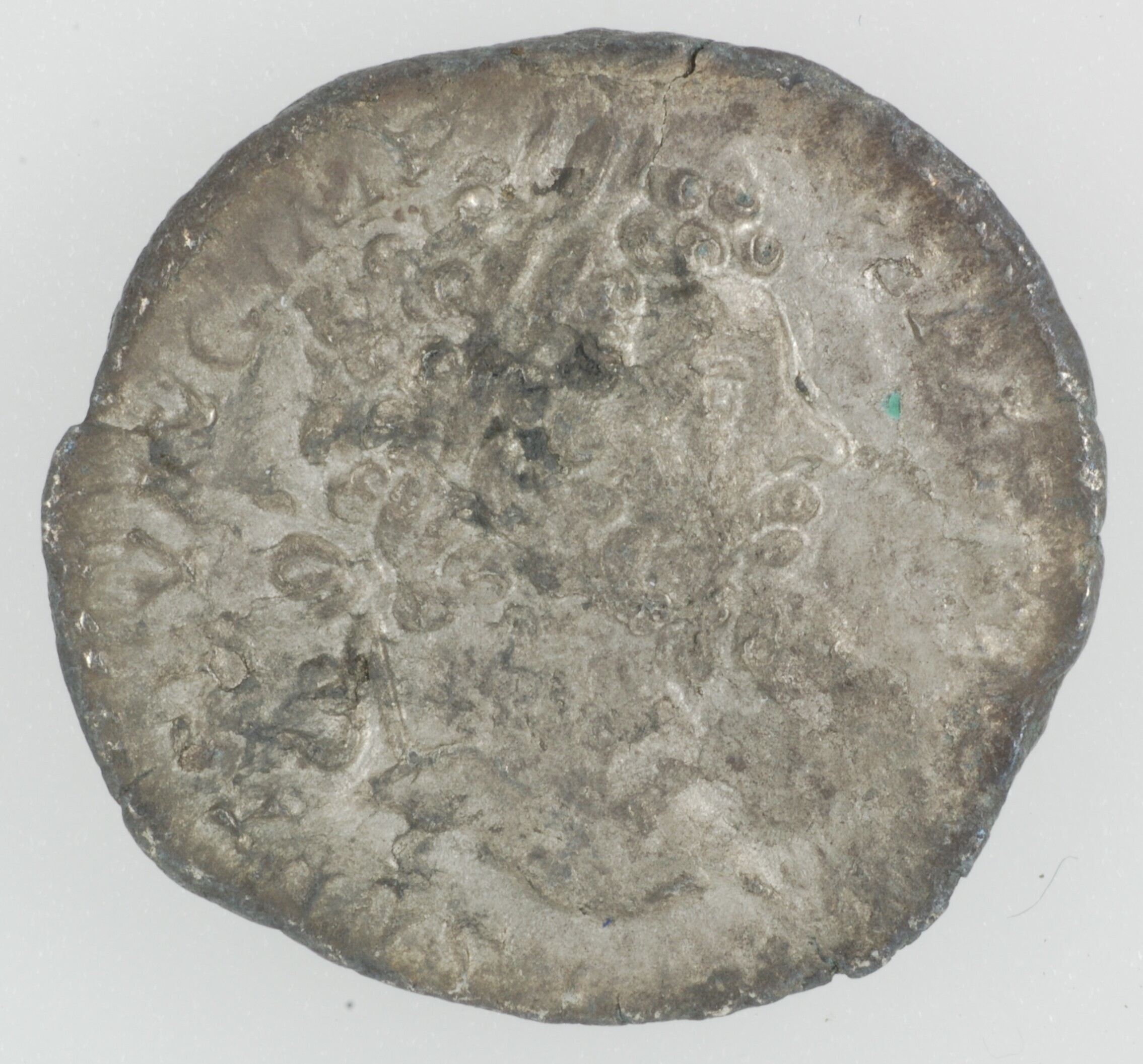 Denarius; Romeinse Keizerrijk; Septimius Severus (193-211); vz.: [L] SEPT SEV AVG IMP XI PART MAX, gelauwerd hoofd naar rechts; kz.: VICTORIAE AVG G FEL naar links vliegend Victoria, in haar beide handen een laurierkrans houdend boven een schild dat op een cippus staat; muntplaats: Rome; gewicht: 1.83 gram; referentie RIC IVa 144b; Archeologische Kroniek NH ...