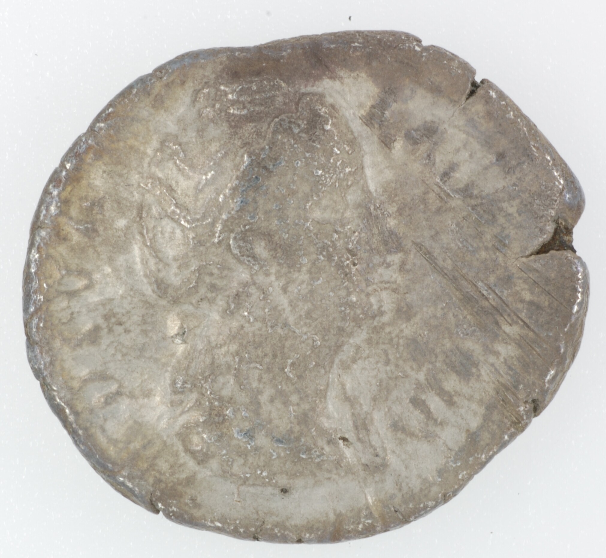Denarius; Romeinse Keizerrijk; Diva Faustina I (141-145); vz.: DIVA - FAVSTINA, gedrapeerde buste naar rechts; kz.: AETER NITA[S], naar rechts staande Aeternitas, een globe vasthoudend, sluier over haar hoofd waaiend; muntplaats: Rome; gewicht: 2.57 gram; referentie: RIC III 351; Archeologische Kroniek NH 2002, 26, nr. 7; NUMIS 1006489