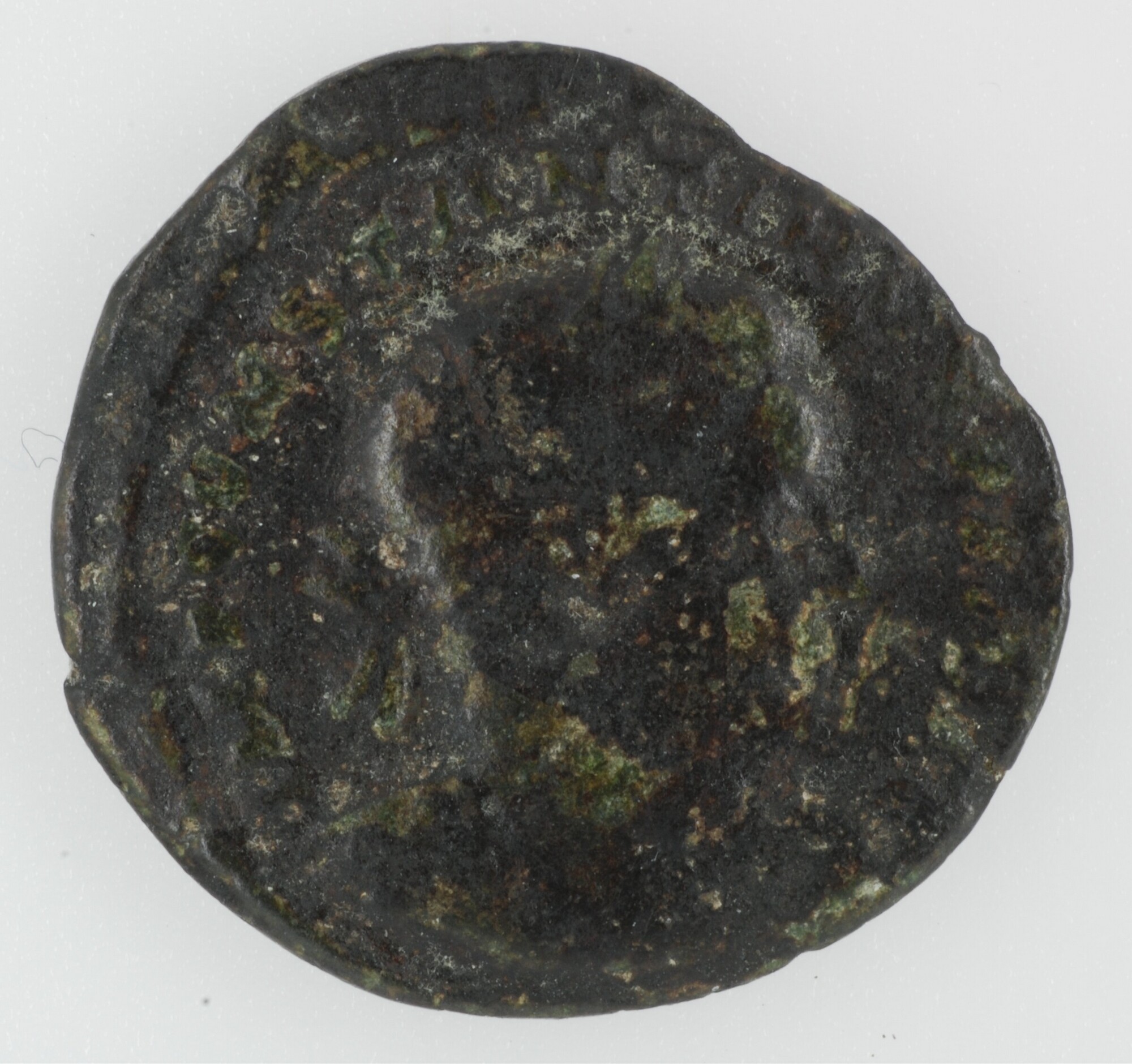 AE4; Romeinse Keizerrijk; Constantijn de Grote (307-337); vz.: IMP CONSTANTINVS [P F AVG], gelauwerde, geharnaste en gedrapeerde buste naar rechts van achteren gezien; kz.: SOLI INVICTO COMITI, Sol staat naar links rechterhand opgeheven en in linkerhand globe, chlamis over linkerschouder, in afsnede PLN; muntplaats: Londen; gewicht: 2.12 gram; referentie RIC VII 107