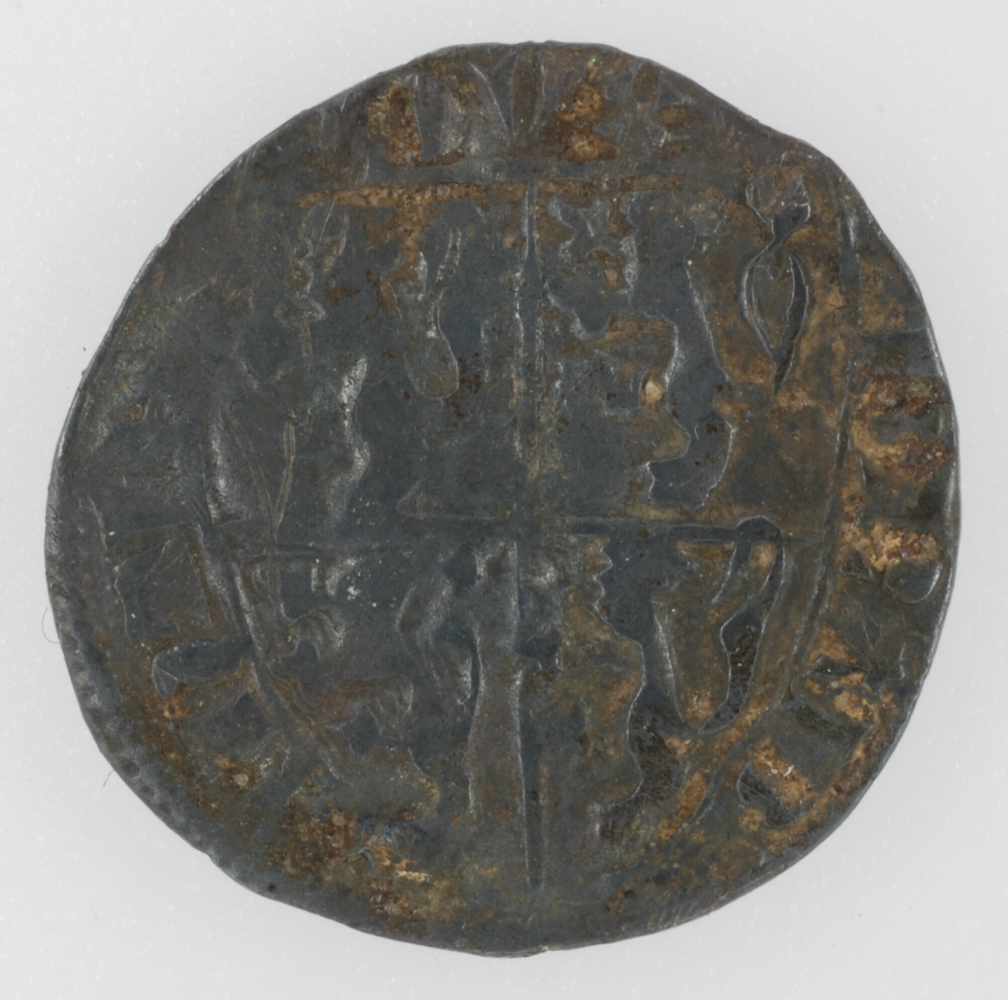 Sterling; België; Brabant Hertogdom (1183-1795); Jan III (1312-1355); vz.: samengesteld wapenschild van Brabant en Limburg, met omschrift: DVX / BRAB / ANTIA; kz.: kort kruis met gebloemd uiteinde binnen parelcirkel, met omschrift MONETA:LOVANIES (interpunctie twee cirkels boven elkaar); muntplaats: Leuven; gewicht: 1.38 gram; referentie: vHoudt I G256