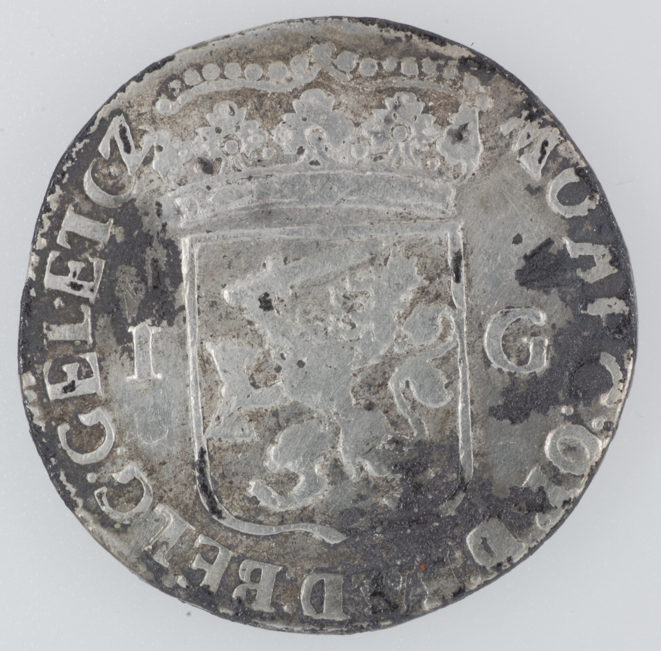 Gulden; Gelderland Provincie (1581-1795); vz.: gekroond generaliteitswapen met ter weerszijden waardeaanduiding 1 – G, met omschrift MO:ARG:ORD:FOED:BELG:GEL:ET.C•Z; kz.: Nederlands maagd, in de rechterhand een speer waarop een vrijheidshoed, met de linkerelleboog steunend op een rechtop op een zuil staande bijbel met in afsnede 1712, met omschrift HAC NITIMVR – HANC TVEMVR; muntplaats: Harderwijk; gewicht: 9.67 ...