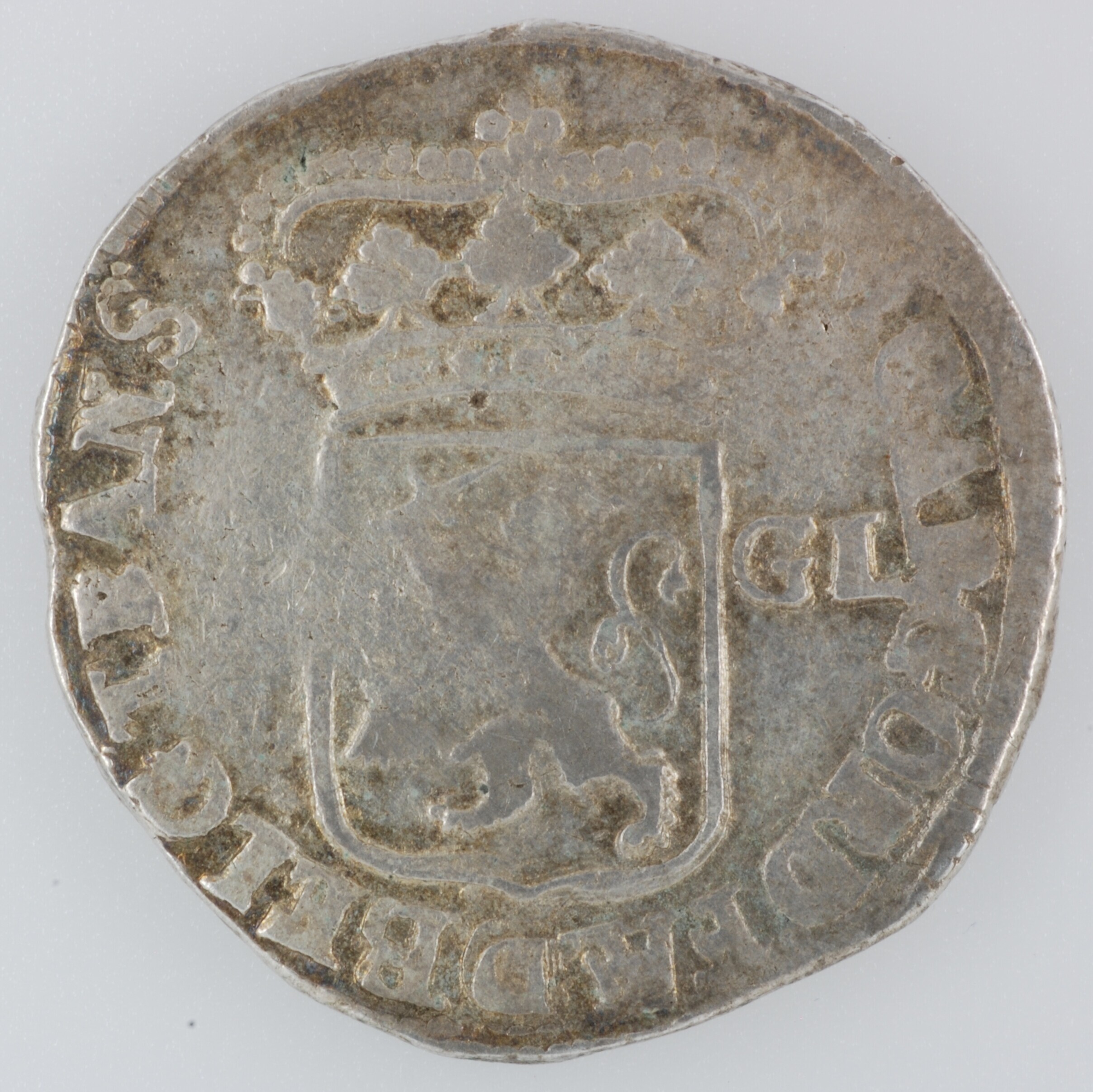 Gulden; Overijssel Provincie (1581-1795); vz.: gekroond generaliteitswapen met ter weerszijden waardeaanduiding 1 – G, met omschrift MO ARG ORD FAED BELG TRANS; kz.: Nederlands maagd, in de rechterhand een speer waarop een vrijheidshoed, met de linkerelleboog steunend op een rechtop op een zuil staande bijbel met in afsnede 1704, met omschrift HAC NITIMVR – [H]ANC ...