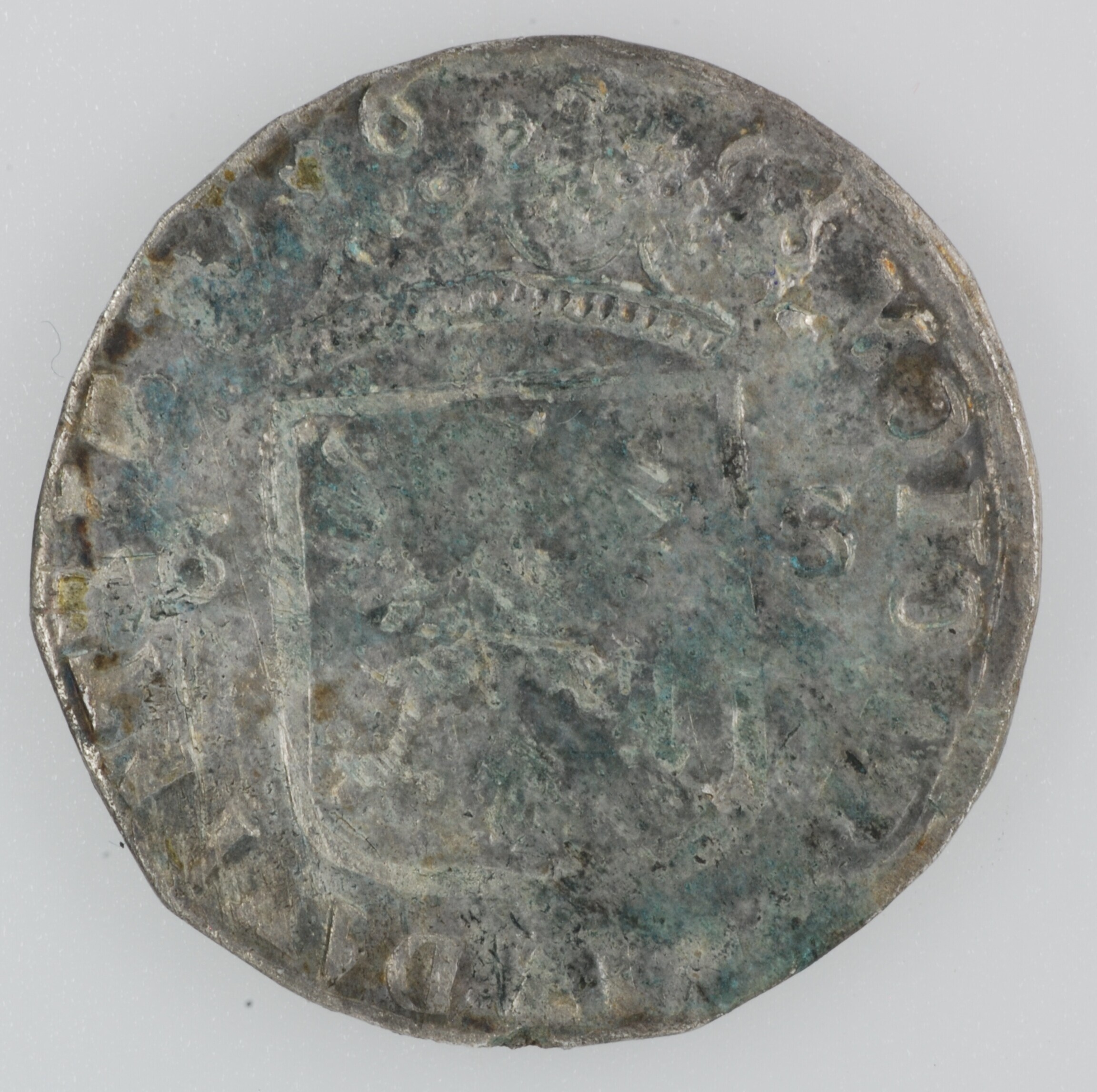 Rijderschelling; Overijssel Provincie (1581-1795); Steden: Deventer; vz.: met palmtakken versierd, gekroond provinciewapen met ter weerszijden waardeaanduiding 6 - S, jaartal boven de kroon, met omschrift MO.NO.AR[G.C]IV.DAVENTRIAE 1-6-8-[.]; kz.: geharnaste ridder met een sjerp om en met een geheven zwaard in rechterhand gezeten op een naar rechts galopperend paard, met omschrift CONCORDIA.RES.PARVAE.CRESCVNT (interpunctie hoge punt); muntplaats: ...