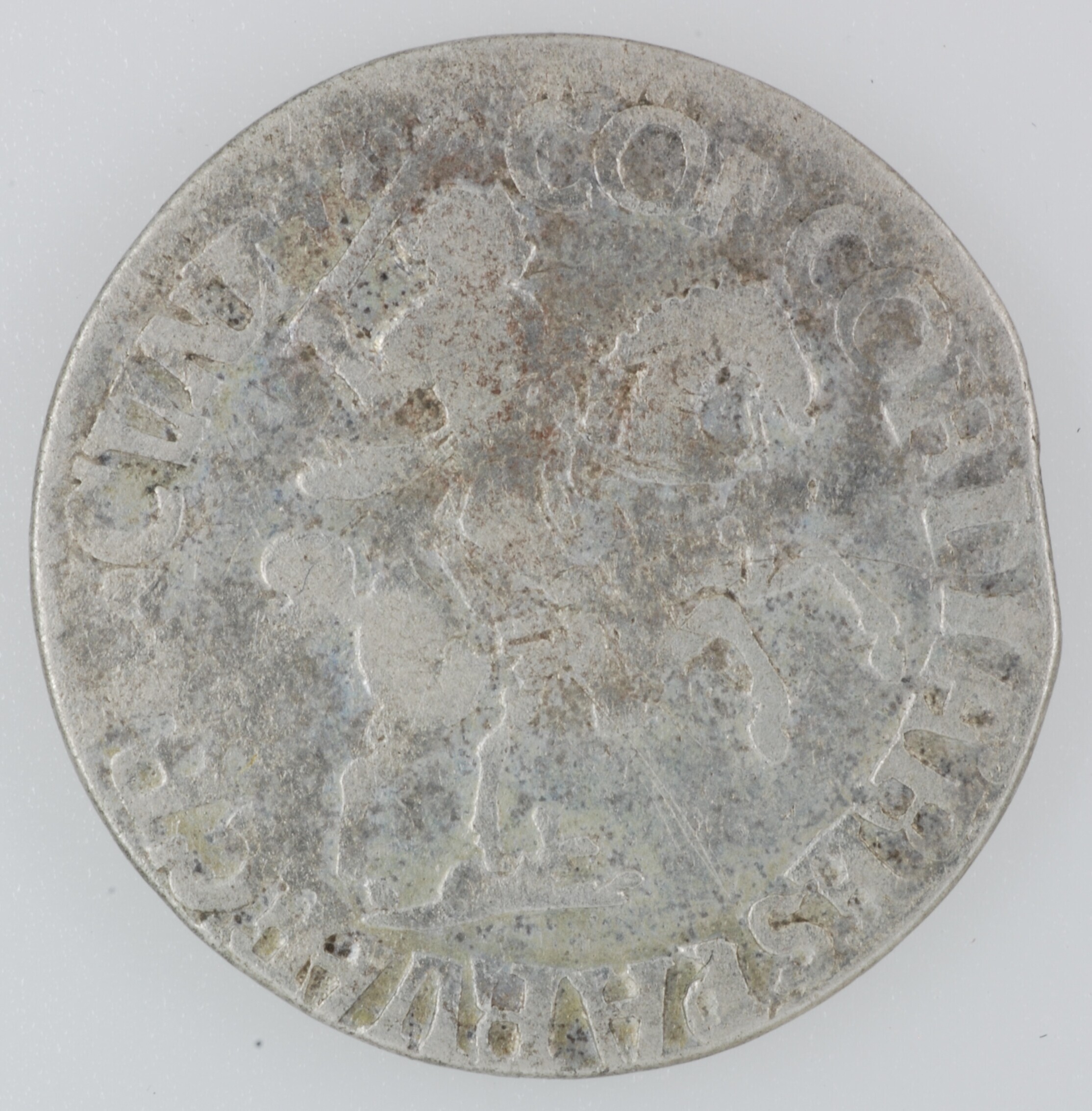 Rijderschelling; Gelderland Provincie (1581-1795); vz.: gekroond provinciewapen met ter weerszijden waardeaanduiding 6 - S, jaartal boven de kroon, met omschrift MO.NO.ARG.ORD.GEL.ET.COM.ZV[T] - 1691; kz.: geharnaste ridder met een sjerp om en met een geheven zwaard in rechterhand gezeten op een naar rechts galopperend paard, met omschrift CONCORDIA.RES.PARVAE.CRESCVNT (eenhoorn) (interpunctie hoge punt); muntplaats: Harderwijk; gewicht: 4.39 ...