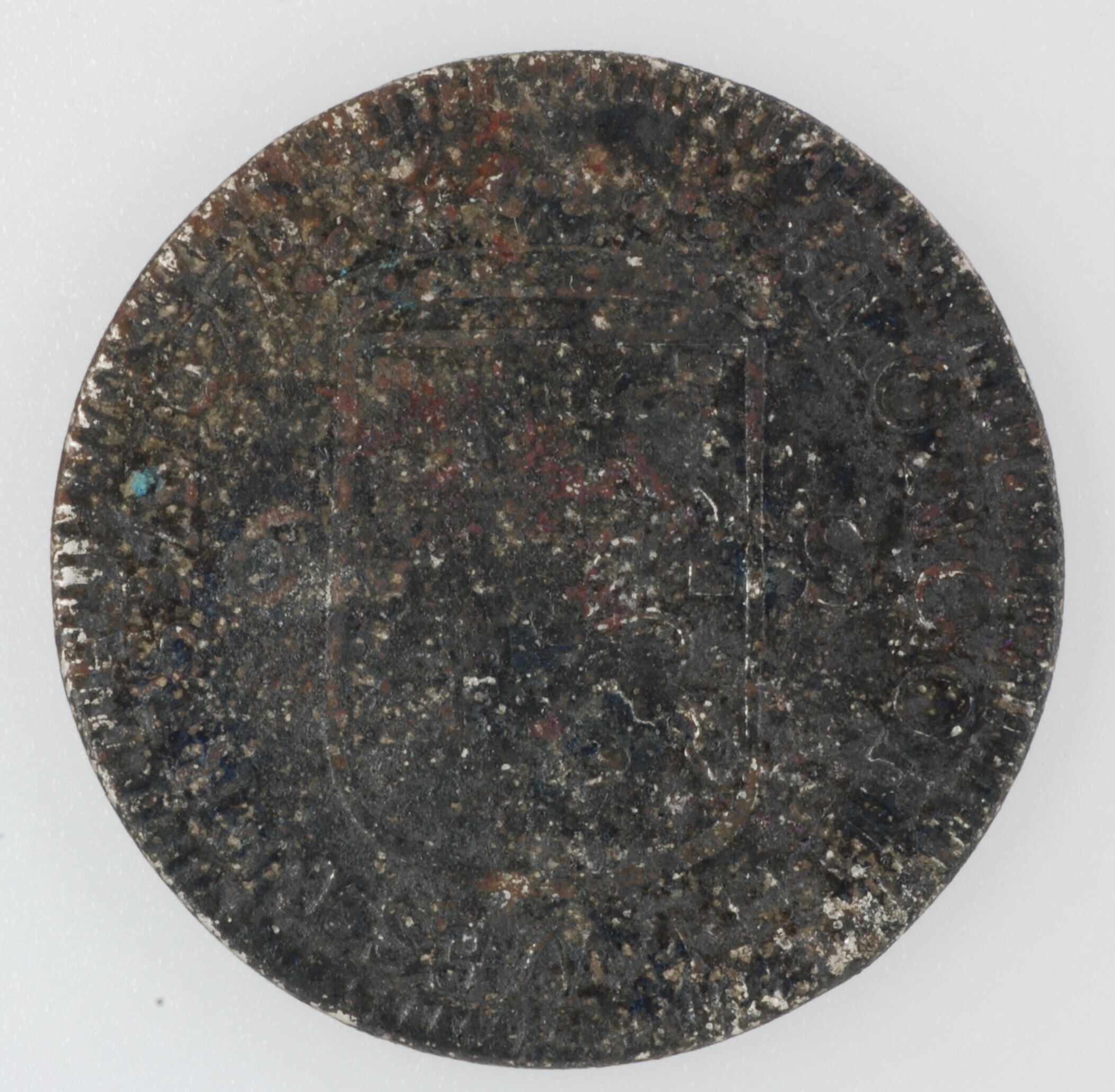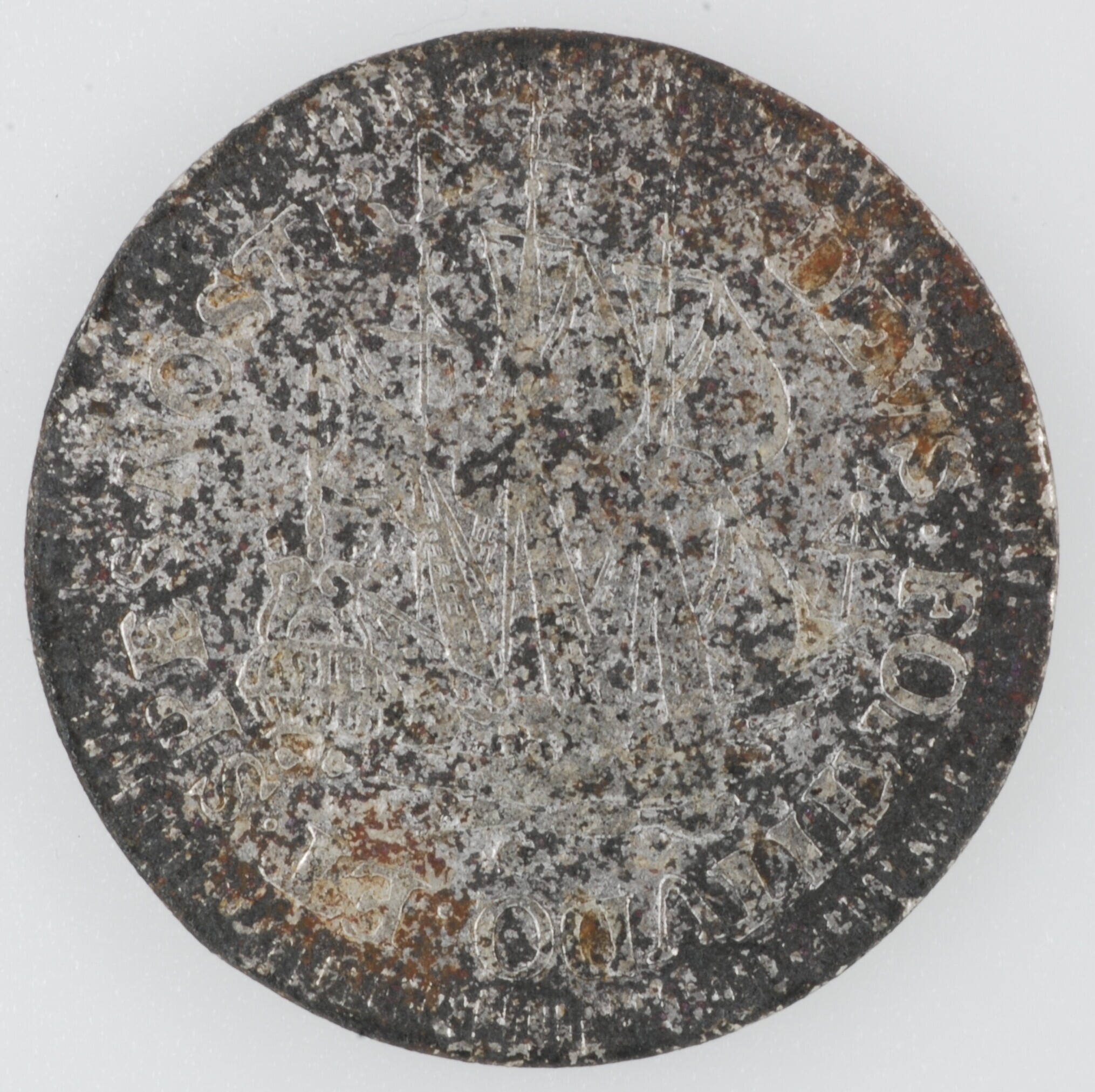Scheepjesschelling; West-Friesland Provincie (1581-1795); atelier Dirk Bosch; vz.: gekroond wapen van West Friesland met ter weerszijden waardeaanduiding 6 – S, met omschrift: MO•NO:ORDIN•WEST•FRISIAE1677; kz.: naar rechts zeilend oorlogsschip, met omschrift: DEVS•FORTITVDO•ET•SPES•NOSTRA; muntplaats: Enkhuizen; gewicht: 2.97 gram; referentie: CNM 2.15.8