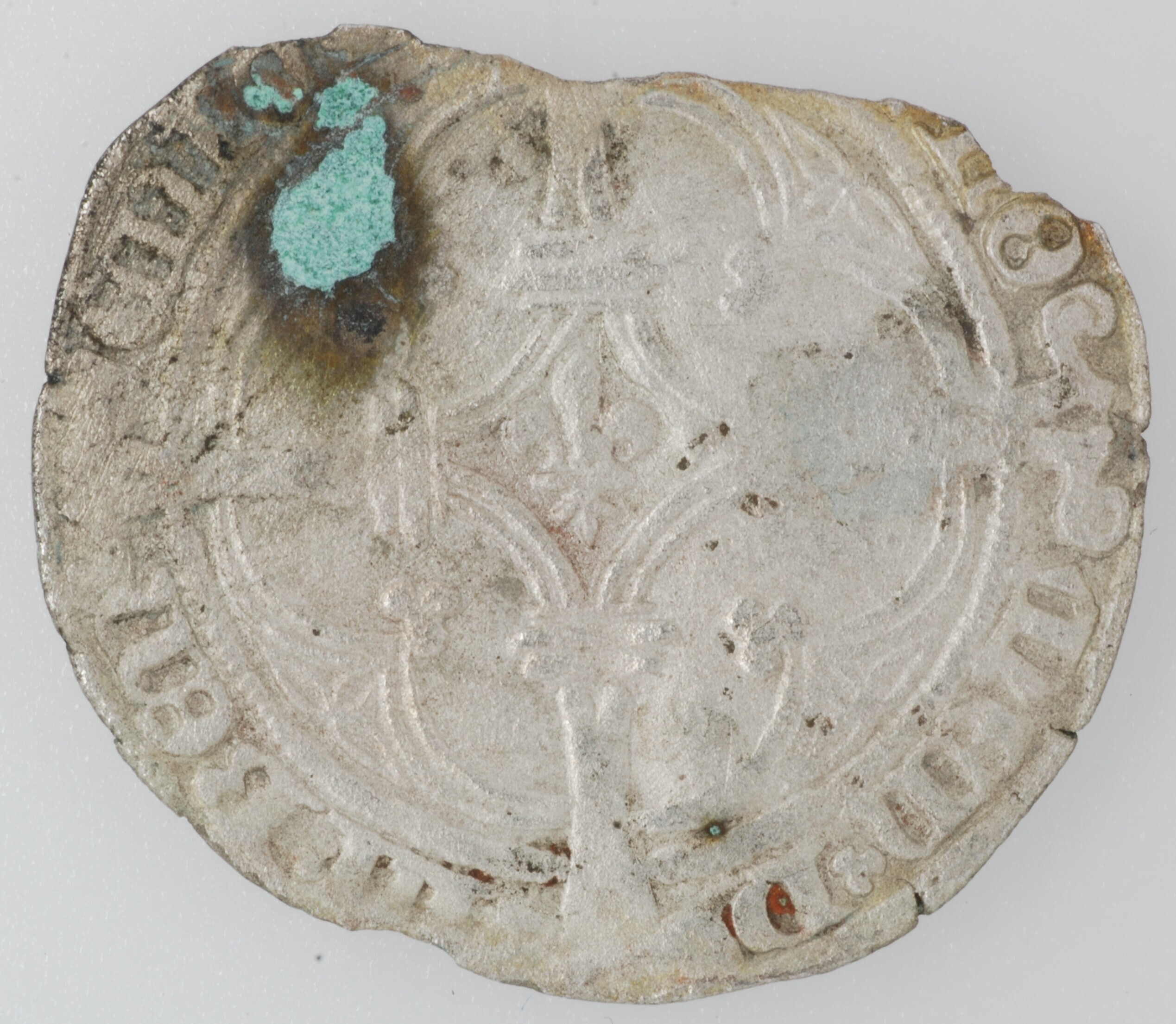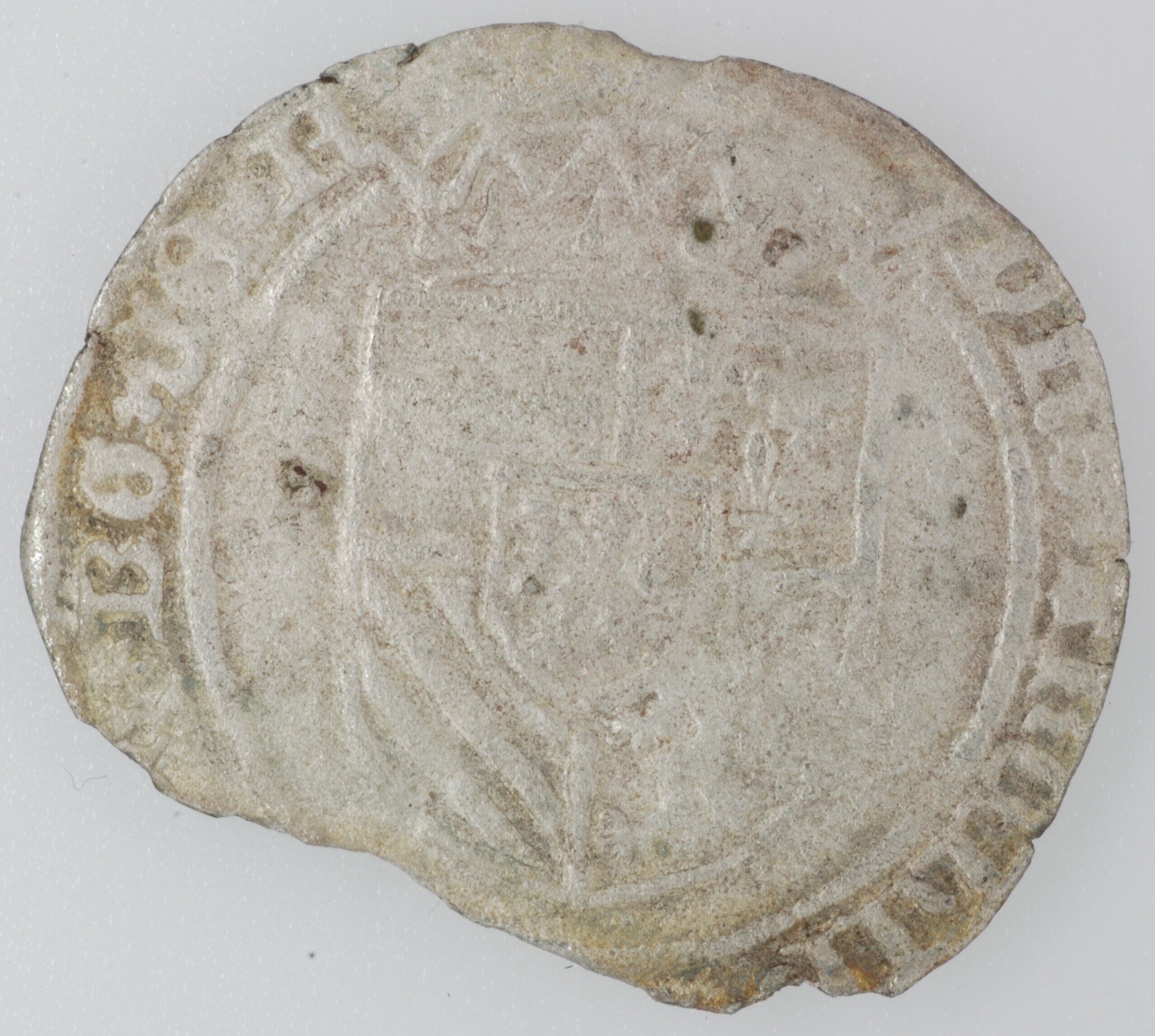 Stuiver; Vlaanderen Graafschap (862-1795); Philips de Schone (1482-1506); vz.: gekroond wapenschild van Oostenrijk Bourgondië binnen parelcirkel, met omschrift PHS:ARCHID[:AVST:DVX:]BG:CO:F; lang kruis eindigend in bloemen met lelie in het hart binnen een vierpas en parelcirkel, met omschrift [SIT:]NO / MEN:D / NI:BEN / EDIC[T]; muntplaats: Brugge; gewicht: 2.02 gram; referentie: Gelder / Hoc 112-5, vHoudt II142.BG