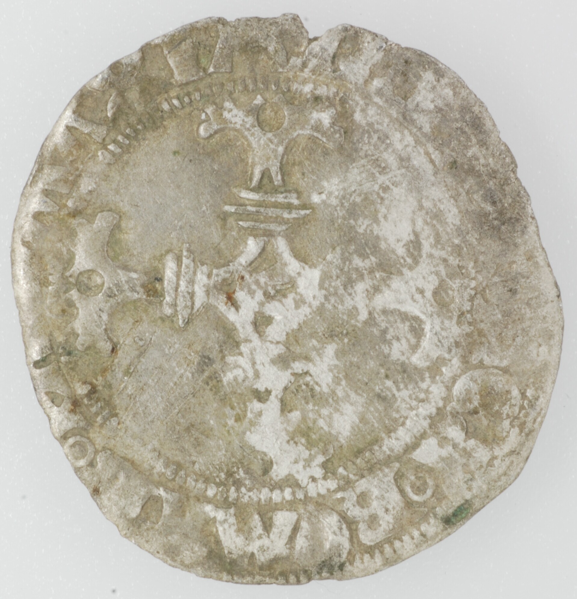 Halve groot; Brabant Hertogdom (1183-1795); Philips de Schone (1482-1506); vz.: wapenschild van Oostenrijk-Bourgondië binnen parelcirkel, met omschrift (kroon) PHI:ARC[HIDV]CI:AVS:BVR':BRA (hand); kort kruis eindigend in bloemen met in het hart binnen vierpas en parelcirkel, met omschrift (kroon) MAXIMIL[IAN:]REX:ROMAN:PA (in omschrift cirkels in plaats van dubbele punt); muntplaats: Antwerpen; gewicht: 0.92 gram; referentie: Gelder / Hoc 86-1b, ...