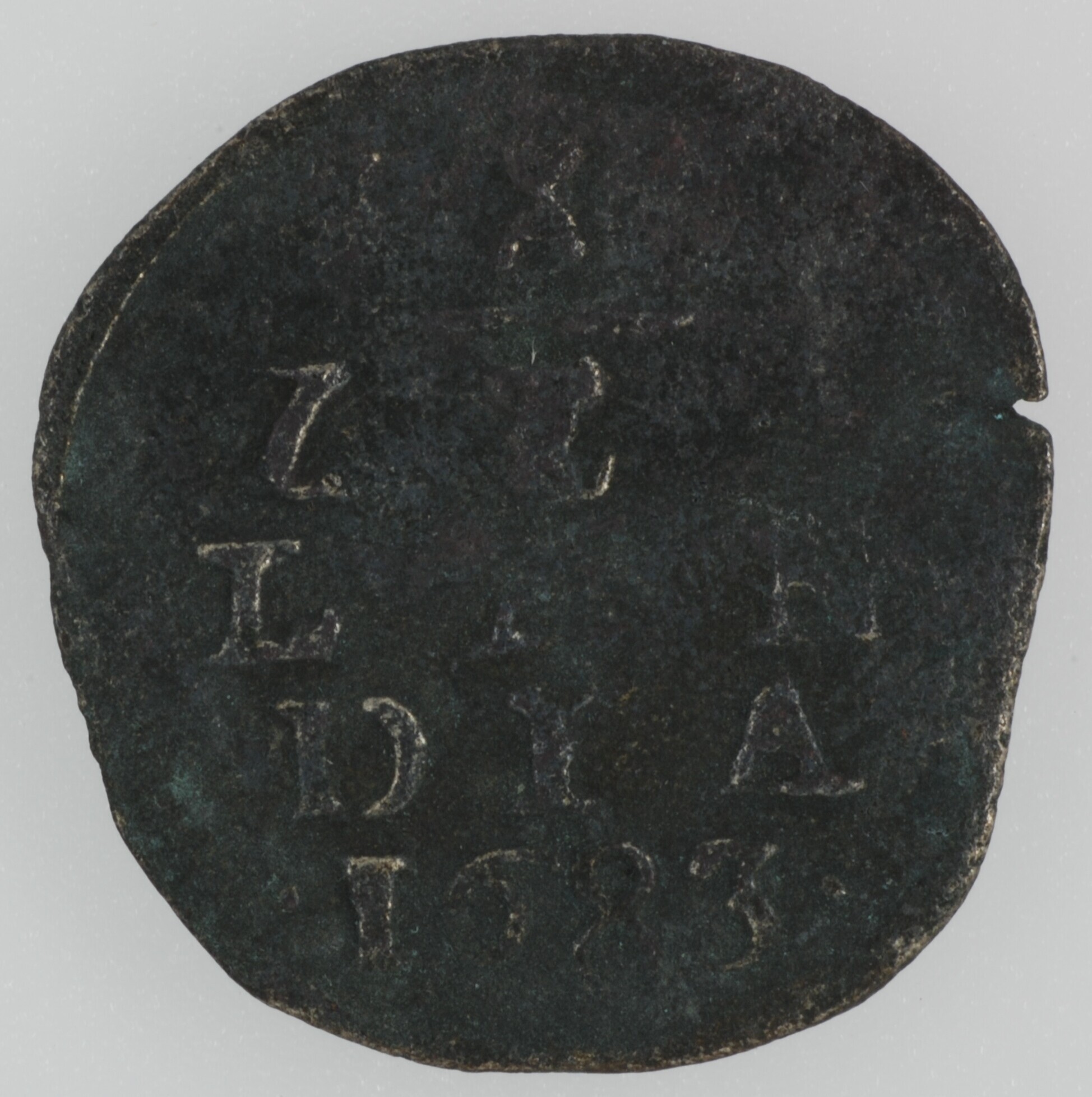 Stuiver; Zeeland provincie (1581-1795); vz.: in vijf regels: [•1] (burcht) [S•] / ZEE / LAN / DIA / •1683•; kz.: een half uit de golven naar links zwemmende leeuw; muntplaats: Middelburg; gewicht: 0.79 gram; referentie: CNM 2.49.98