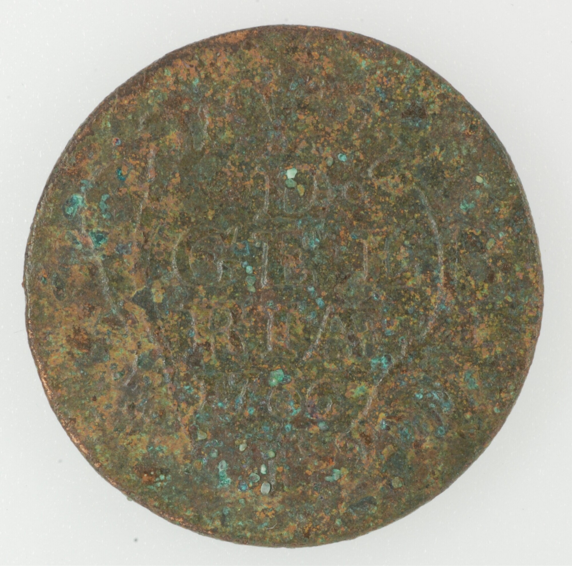 Duit; Gelderland Provincie (1581-1795); vz.: in vijf regels: •D• / GEL / RIAE / 1766 / (geknotte boom met loot); kz.: gekroond wapenschild van Gelderland, met omschrift IN DEO EST SPES NOSTRA; muntplaats: Harderwijk; gewicht: 2.52 gram; referentie: Purmer / Wiel 1017, CNM 2.17.195