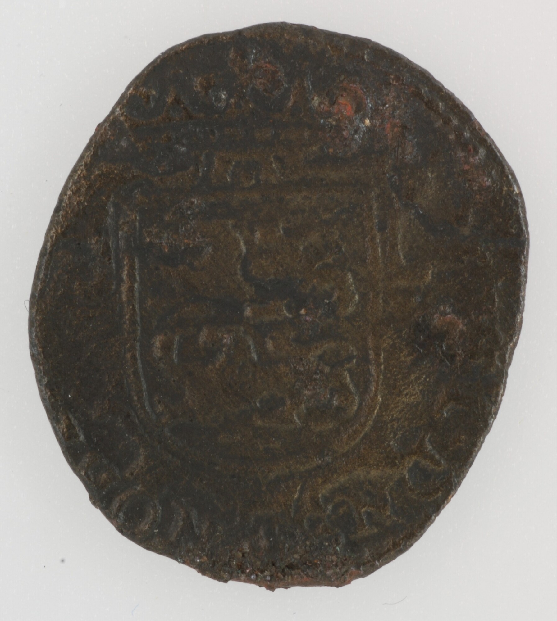 Duit; Friesland Provincie (1581-1795); vz.: in een bladerkrans in drie regels FRI / SIA / 1620; kz.: met open kroon gekroond en versierd wapenschild van Friesland, met omschrift [(leeuw) NIS]I•DNS•NO[BISCVM]; muntplaats: Leeuwarden; gewicht: 1.39 gram; schaars; referentie: Purmer / Wiel 6005, CNM 2.16.141
