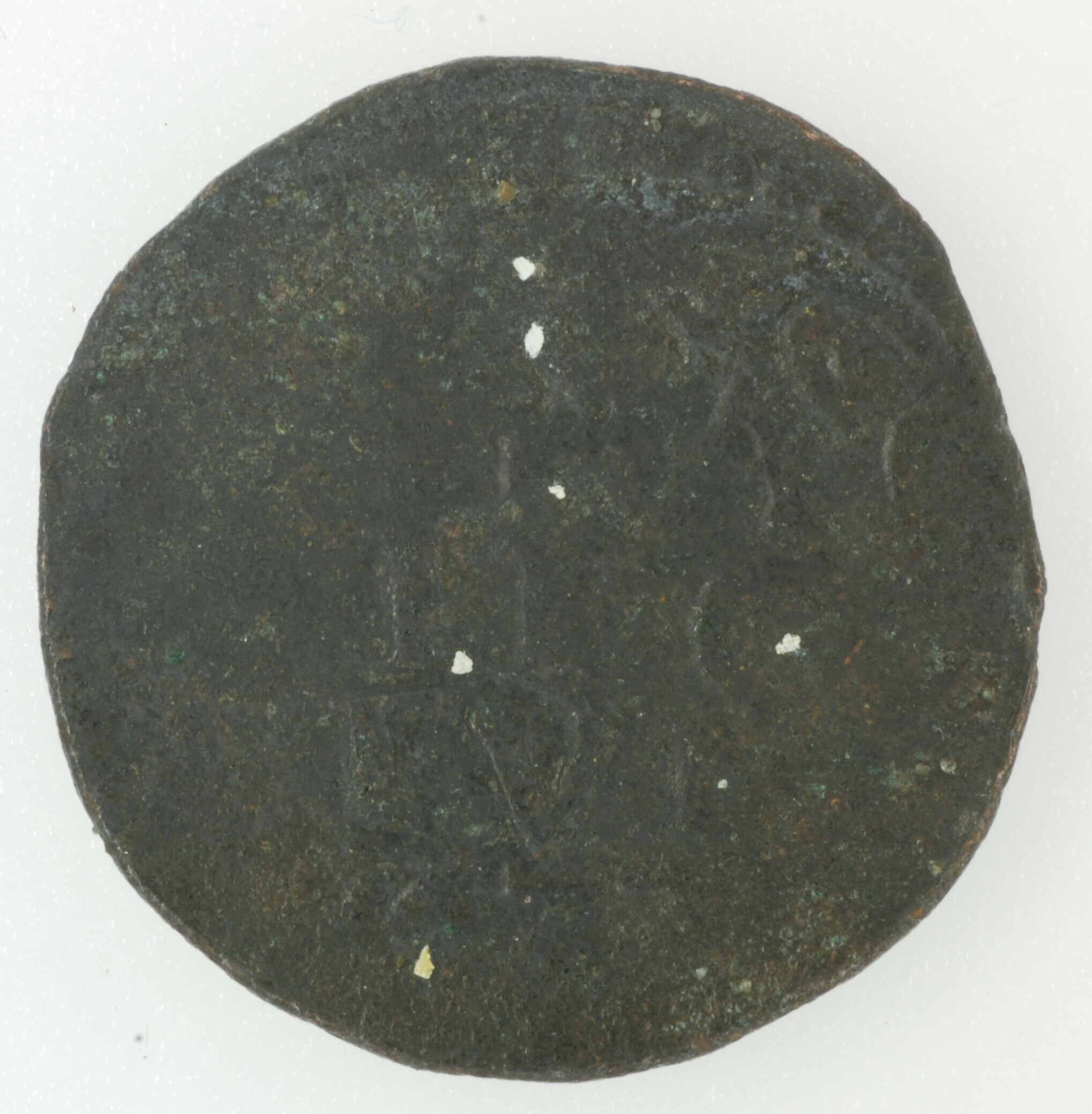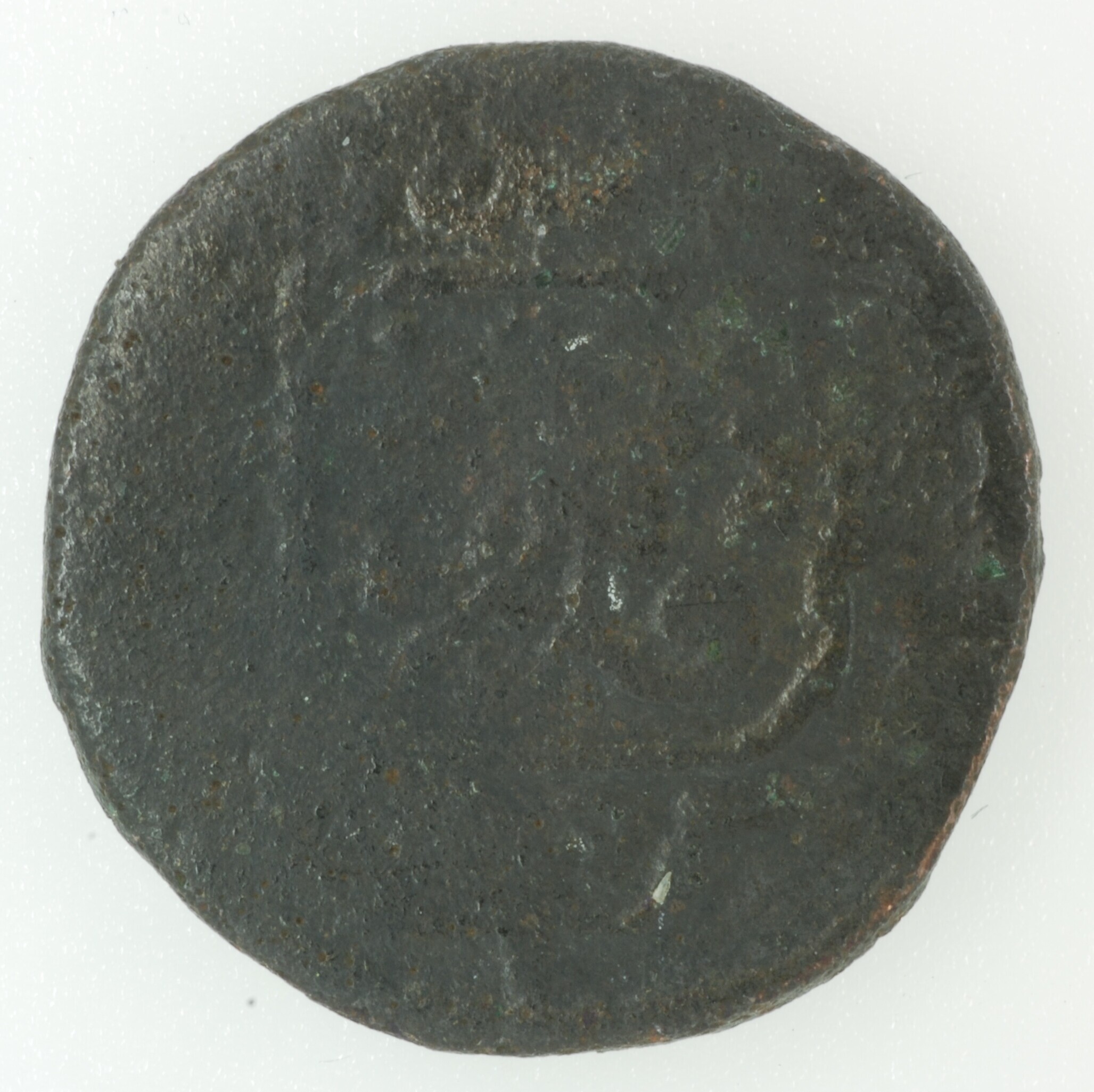 Duit; Utrecht Stad (1581-1795); vz.: in vier regels: TRA / IEC / TVM / 1637; kz.: gedamasceerd stedelijk wapenschild met rondom versiering; muntplaats: Utrecht; gewicht: 2.95 gram; referentie: Purmer / Wiel 5105, CNM 2.44.10