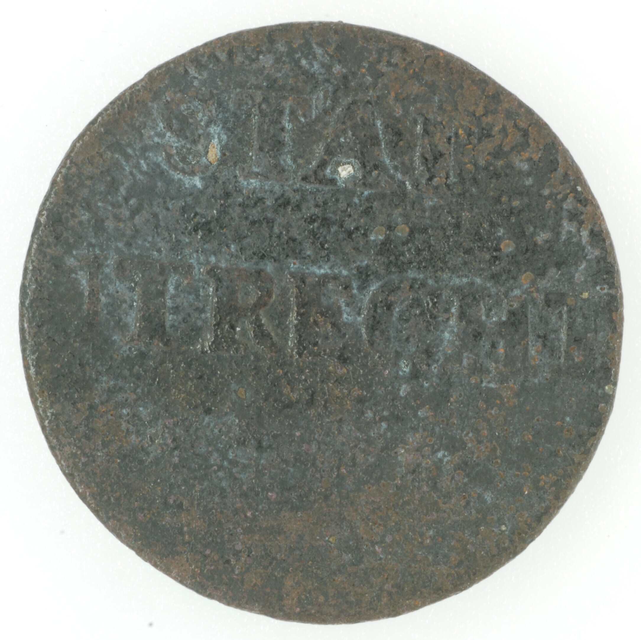 Duit; Utrecht Stad (1581-1795); vz.: in drie regels: STAD / UTRECHT / [176.]; kz.: gedamasceerd stedelijk wapenschild fijn gearceerd, gehouden door twee leeuwen, de afsnede bestaat uit een dikke lijn, met hieronder een versierde accolade met een grote schelp; muntplaats: Utrecht; gewicht: 2.54 gram; referentie: Purmer / Wiel 5113, CNM 2.44.22