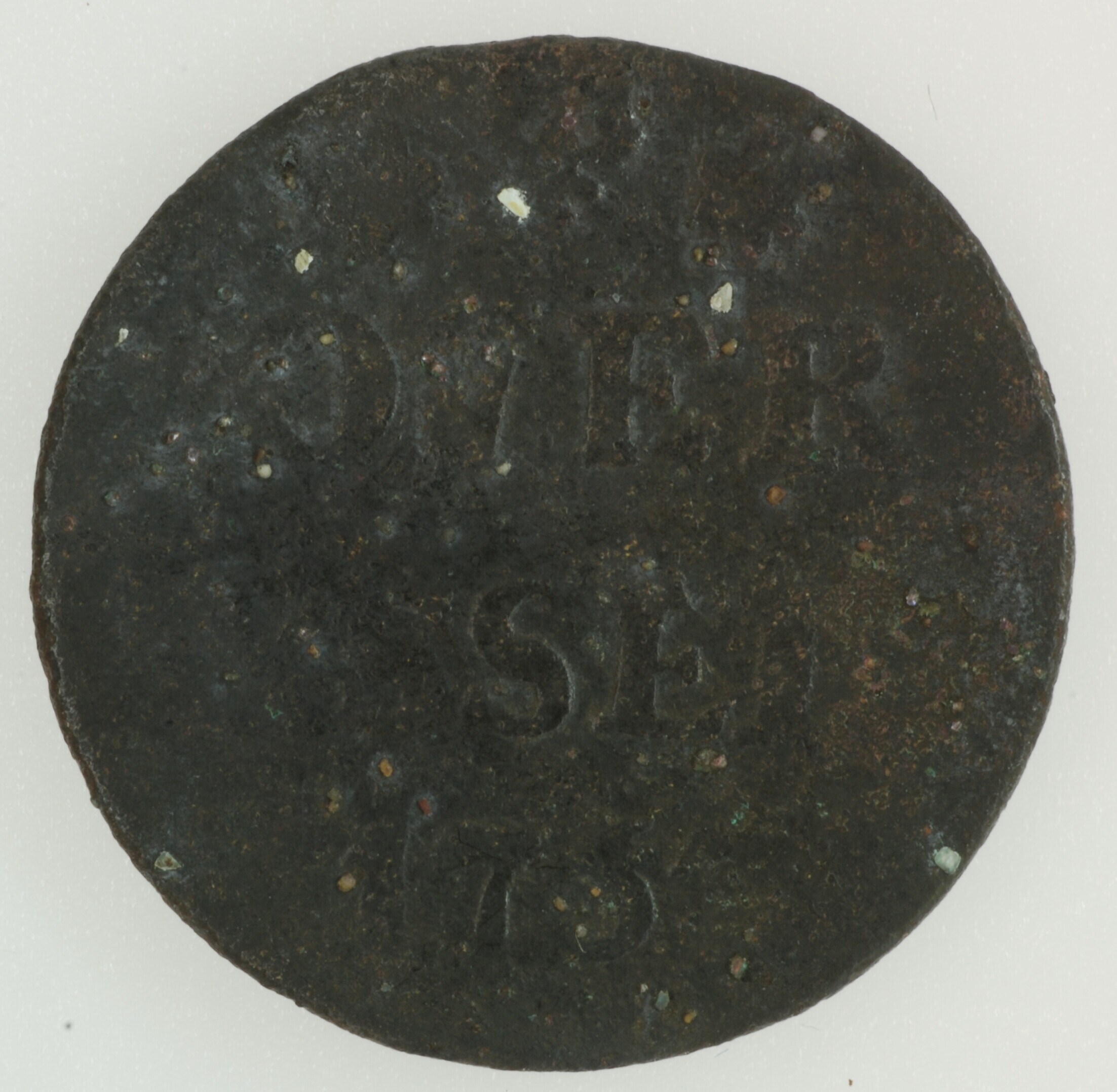 Duit; Overijssel provincie (1581-1795); vz.: in vier regels: rozet (adelaar) rozet / OVER / YSSEL / 1767[•]; kz.: gekroond wapenschild van Overijssel, met omschrift VIGILATE – [E]T ORATE; muntplaats: Kampen; gewicht: 2.43 gram; referentie: Purmer / Wiel 7009, CNM 2.38.115