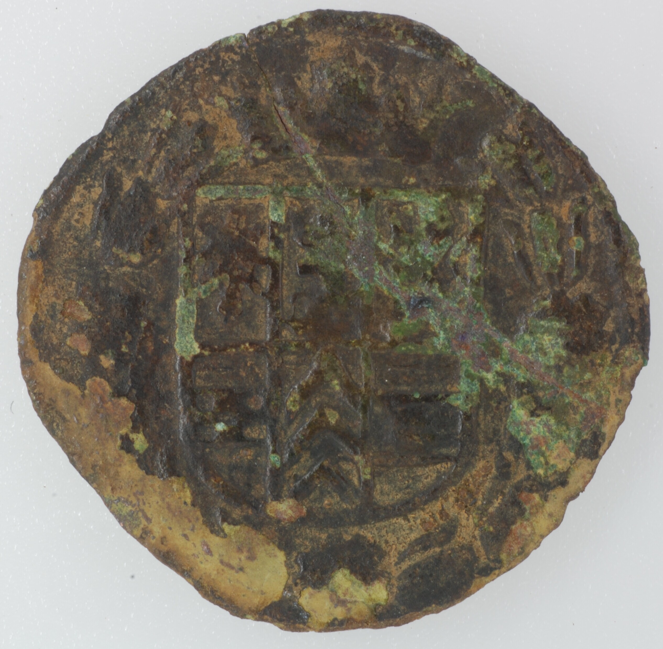 Drie heller; Duitsland; Kleef Hertogdom (1417-1795); possederende vorsten (1609-1624); vz.: gekroond wapenschild met 6 kwartieren, in de kwartieren de wapens van Kleef, Gulik, Berg, Mark, Ravensberg en Ravenstein binnen bladerkrans; kz.: binnen bladerkrans in drie regels: • DV / CLI / VIAE; muntplaats: Emmerich; gewicht: 1.05 gram; referentie: Noss 347-353, Krause / Mishler 5