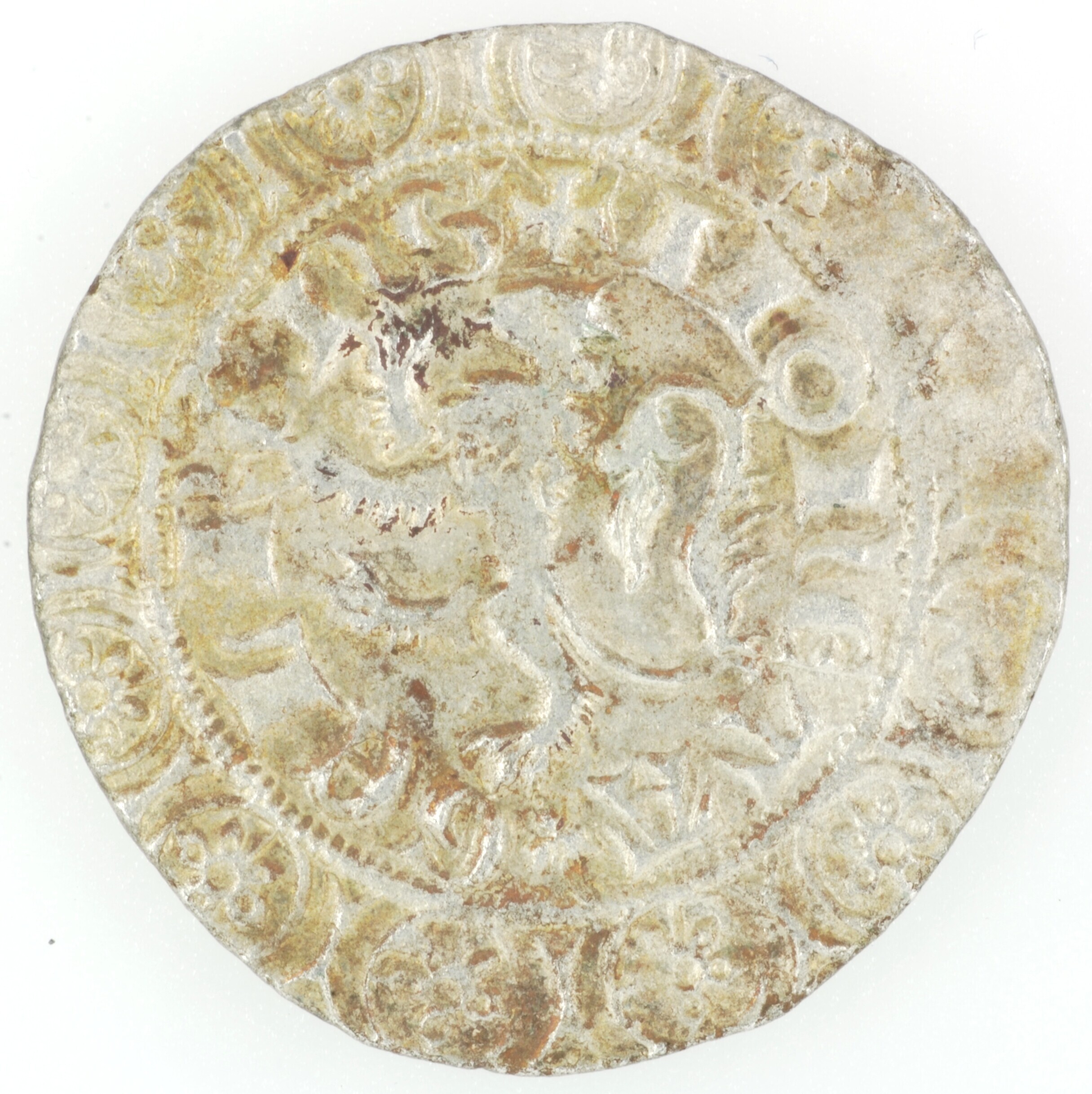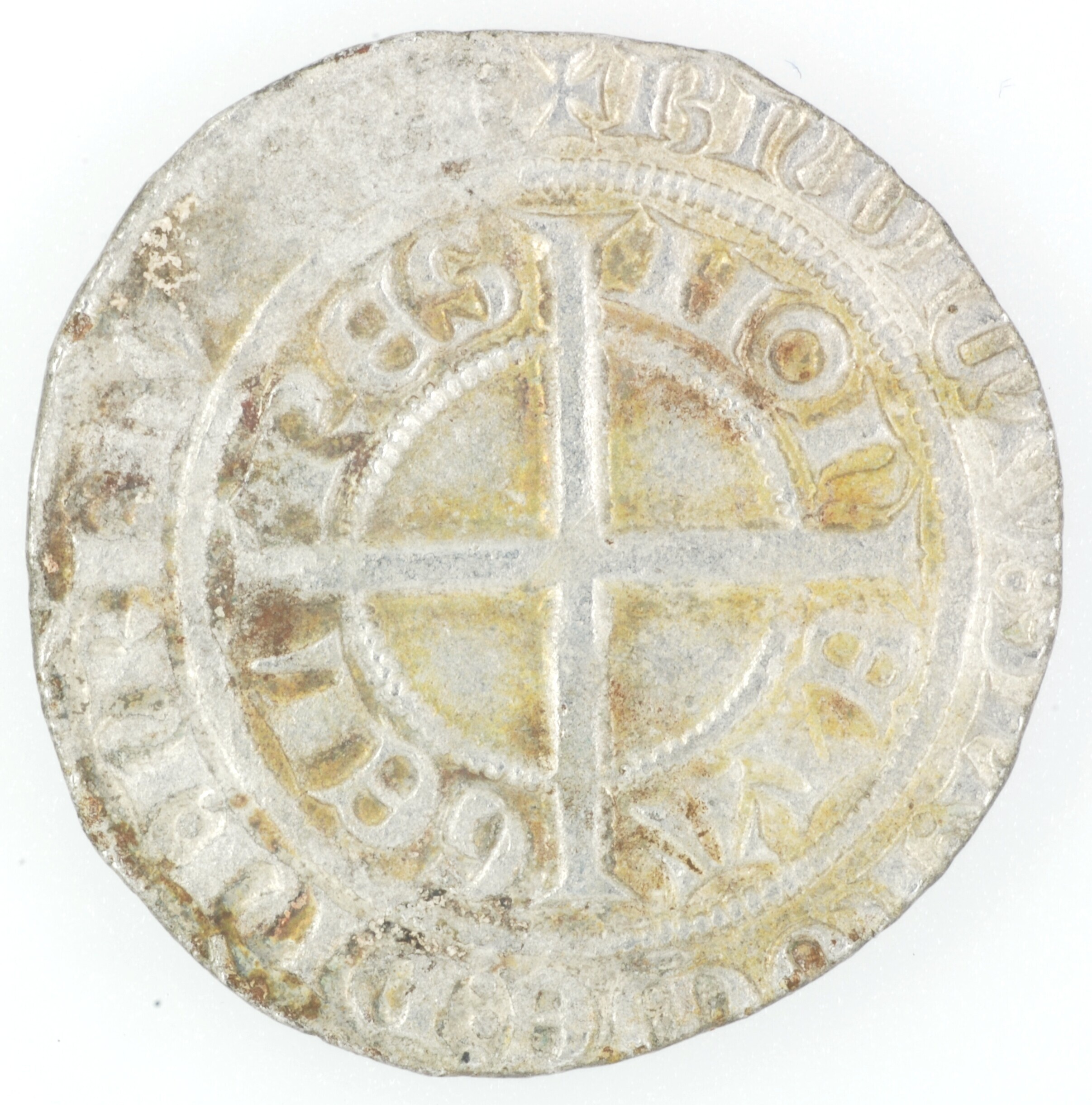 Leeuwengroot; Gelre Hertomdom (1339-1675); Reinout III-Eduard (1343-1361-1371); vz.: klimmende leeuw naar links binnen een parelcirkel met in de binnenste rand het omschrift +•MONETA (klaver) GELRENS', buitenste rand twaalf lelies; kz.: middellang gevoet kruis gedeeltelijk binnen een parelcirkel, met omschrift binnenste rand MON / ETA / GEL / RES, buitenste rand +BNDICTV:SIT:NOME:DNI:NRI:IHV:[XP(I)]; muntplaats: Harderwijk; gewicht: 2.98 ...