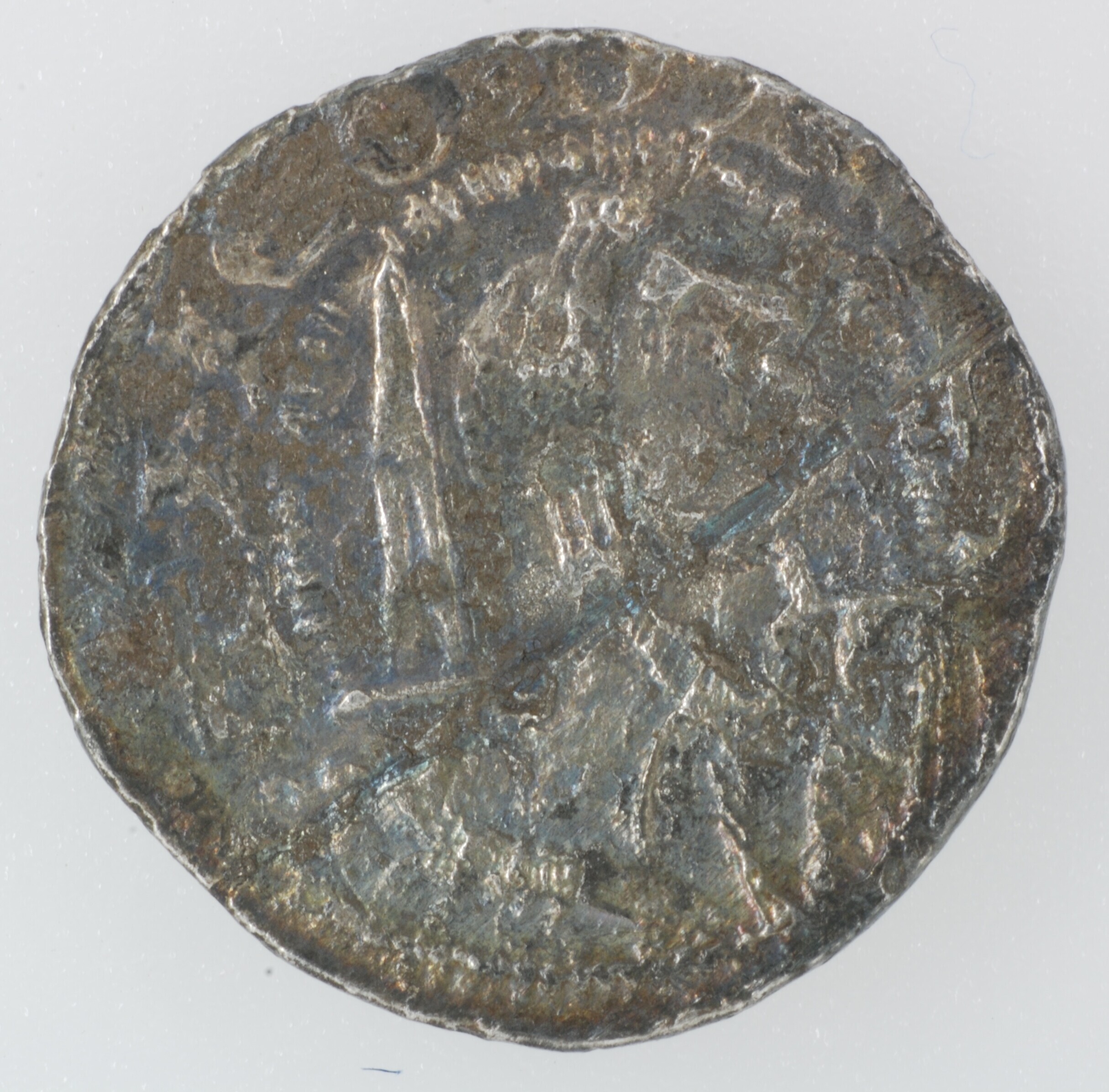 Penning; Holland Graafschap (1049-1581); Dirk VII (1190-1203); vz.: buste met gravenmuts naar rechts, zwaard in rechterhand met omschrift +THEOD[RIC]; kz.: kort gevorkt kruis met in de kwadranten P - A - X - ster binnen parelcirkel, met omschrift +H[OLLAN]T COMES; muntplaats: Dordrecht?; gewicht: 0.52 gram; zeldzaam; referentie: Grolle 7.1Ba, Hengel (1986) C8, Hengel (1998) C8