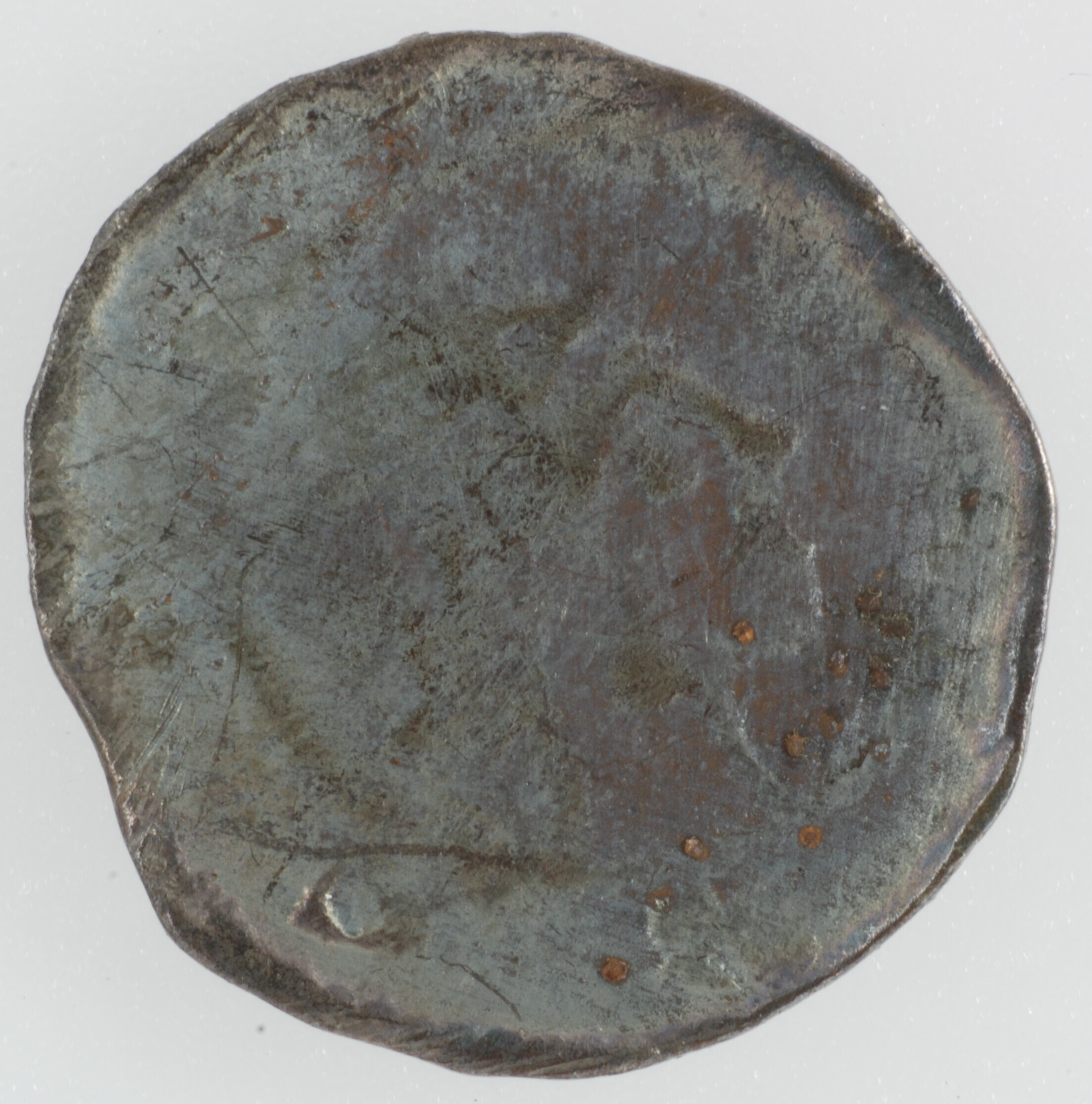 Penning; Holland Graafschap (1049-1581); Floris V (1256-1296); vz.: hoofd naar rechts met gravenmuts binnen parelcirkel, met omschrift [+FLORE]NS; kz.: lang dubbellijnig kruis met puntvorming uiteinde binnen parelcirkel, met omschrift ; muntplaats: Dordrecht; gewicht: 0.59 gram; referentie: Grolle 11.1.1of 11.1.3, Hengel (1986) C19 of C21, Hengel (1998) C19 of C21
