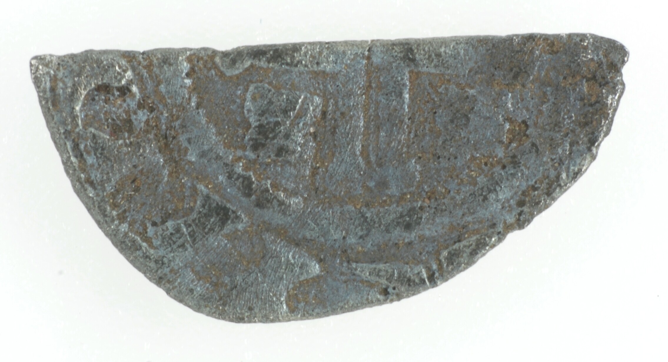 Penning; Holland Graafschap (1049-1581); Willem I (1203-1222); vz.: buste met harnas naar rechts met pothelm en zwaard, pothelm versierd met drie andrieskruisjes binnen parelcirkel, met omschrift: [VV]IL[LEM]; kz.: kort dubbellijnig kruis met vierbladige roosjes in de kwadranten met als initiaalteken een kruisje binnen parelcirkel, met omschrift: [xHOLLA]ND[IA]; muntplaats: Dordrecht?; gewicht: 0.15 gram; referentie: Grolle 8.2.1Ba, ...