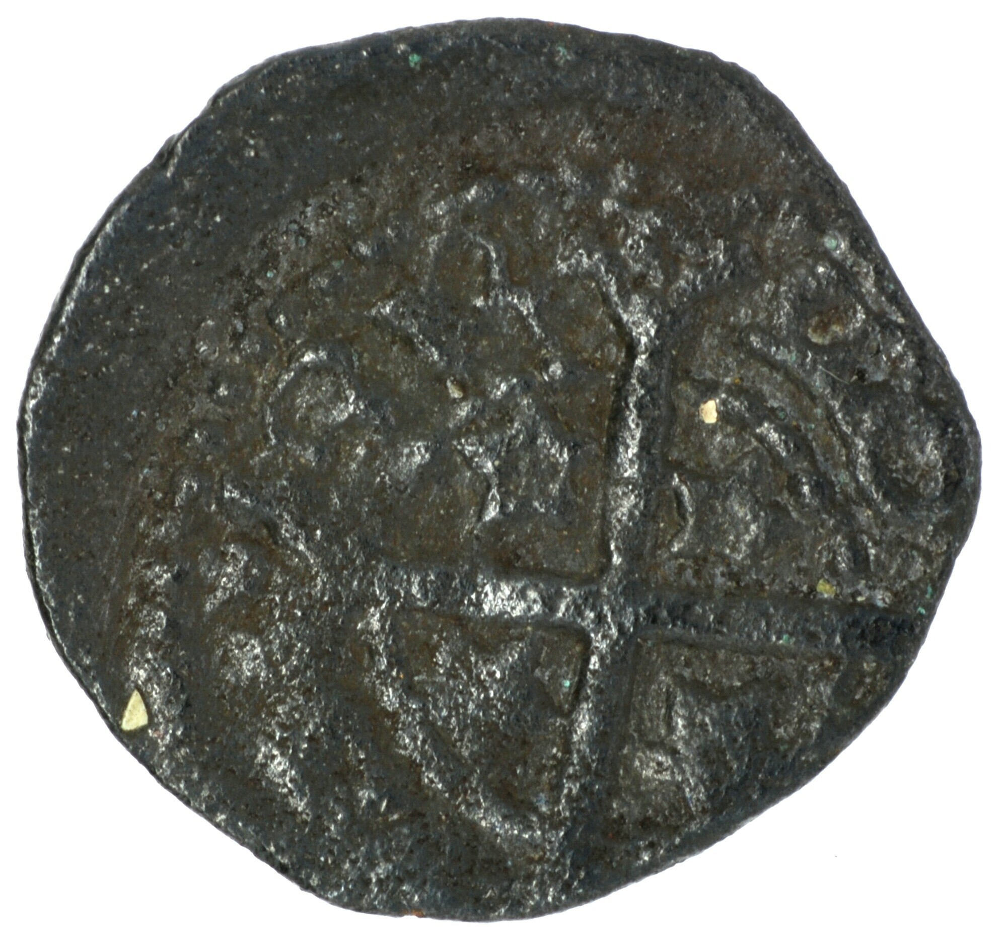 Farthing, type II; Schotland; James III (1460-1488); vz.: drie lelies binnen driepas; kz.: lang kruis met gebloemd uiteinde met ruitersporen in de kwadranten binnen parelcirkel, met omschrift MO / [PA / VP] / ER; muntplaats: Edinburgh; gewicht: 0.50 gram; referentie: Seaby / Purvey 5314