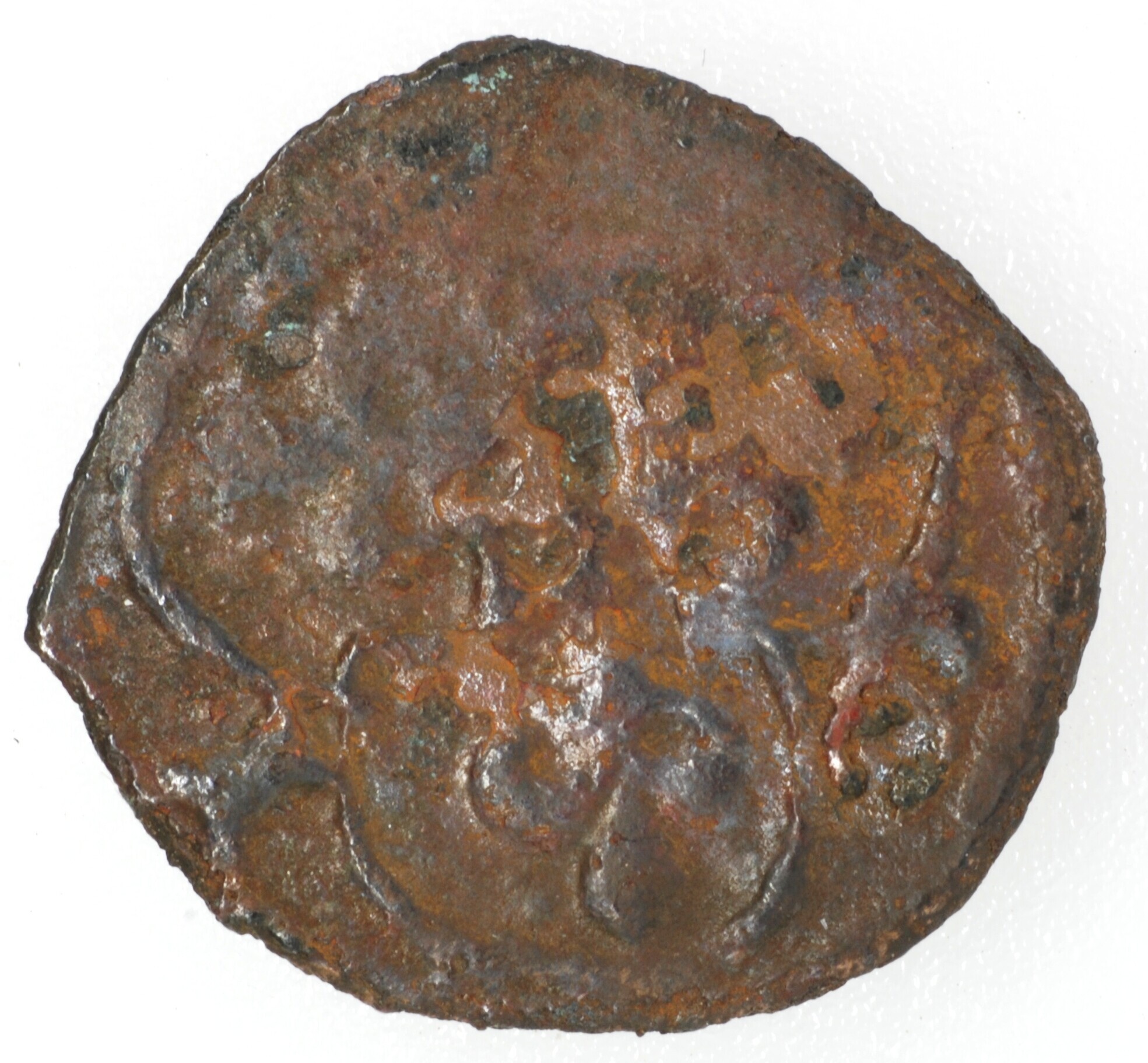 Farthing, type II; Schotland; James III (1460-1488); vz.: drie lelies binnen driepas; kz.: lang kruis met gebloemd uiteinde met ruitersporen in de kwadranten binnen parelcirkel, met omschrift [MO (NE) / PA / VP / (ER)]; muntplaats: Edinburgh; gewicht: 0.43 gram; referentie: Seaby / Purvey 5313 of 5314