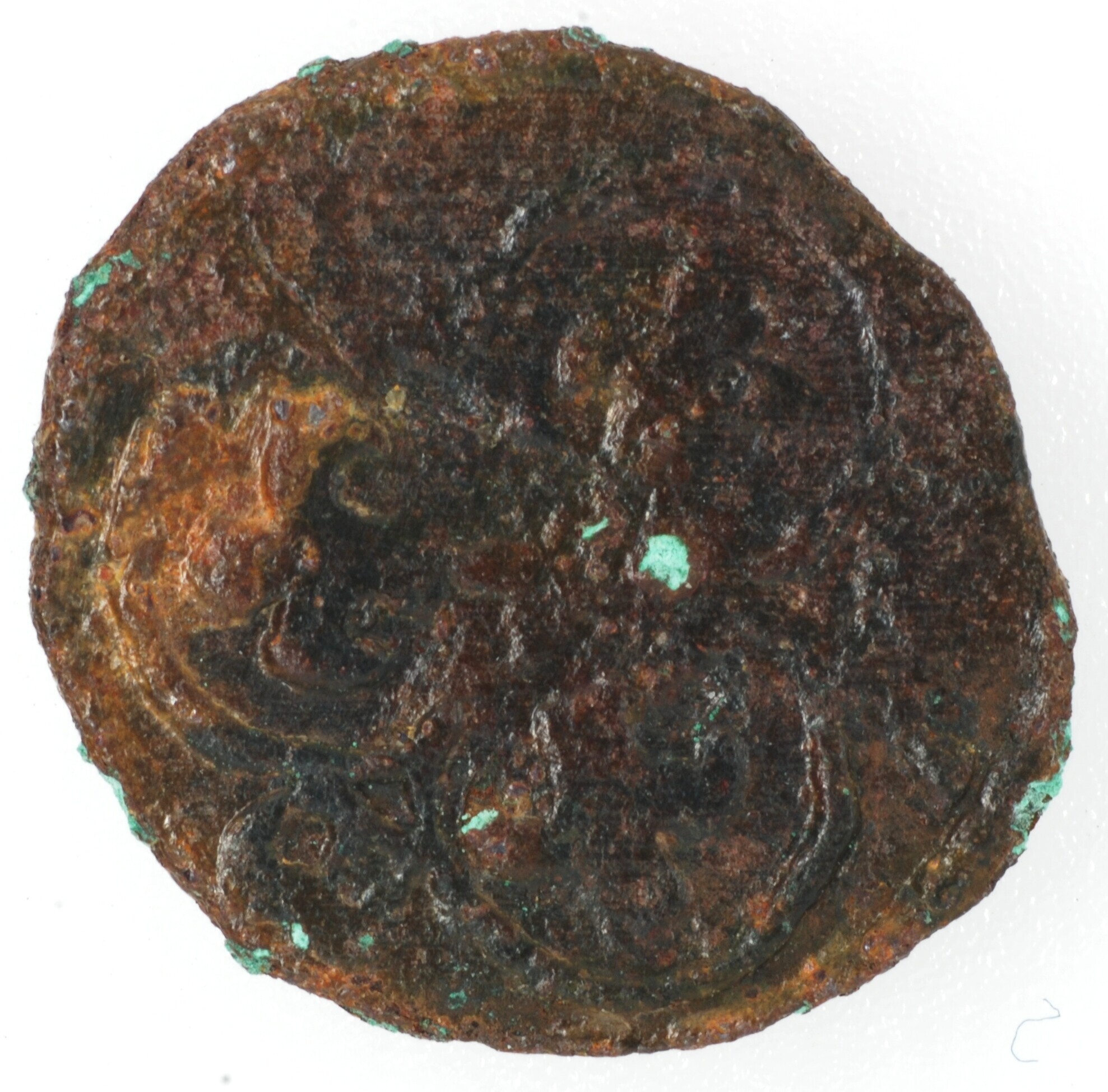 Farthing, type II; Schotland; James III (1460-1488); vz.: drie lelies binnen driepas; kz.: lang kruis met gebloemd uiteinde met ruitersporen in de kwadranten binnen parelcirkel, met omschrift MO / PA / VP / [E]R; muntplaats: Edinburgh; gewicht: 0.57 gram; referentie: Seaby / Purvey 5314