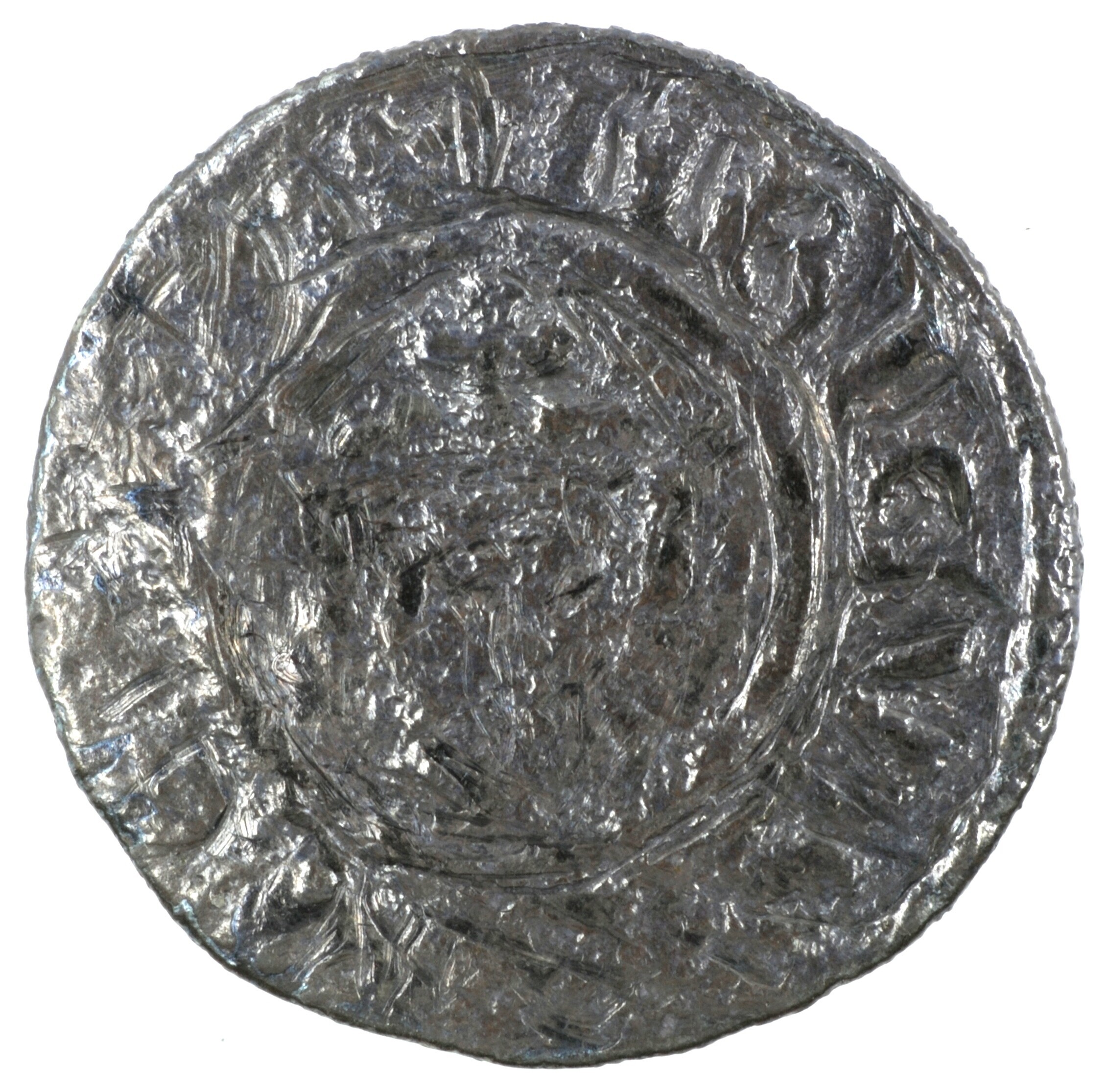 Penny; Engeland; Hendrik II (1154-1189); vz.: aanziende buste met kroon en scepter binnen parelcirkel, met omschrift: [HE]NRICVS['R - EX]; kz.: kort dubbellijnig kruis met puntachtig uiteinde en in elk kwadrant vier punten binnen parelcirkel, met omschrift: +OSB[ER •]ON•WI[LT]; muntplaats: Wilton; gewicht: 1.34 gram; monetarius: Osber; referentie: Seaby: 1345; NUMIS 1013722; aangetast door zeewater