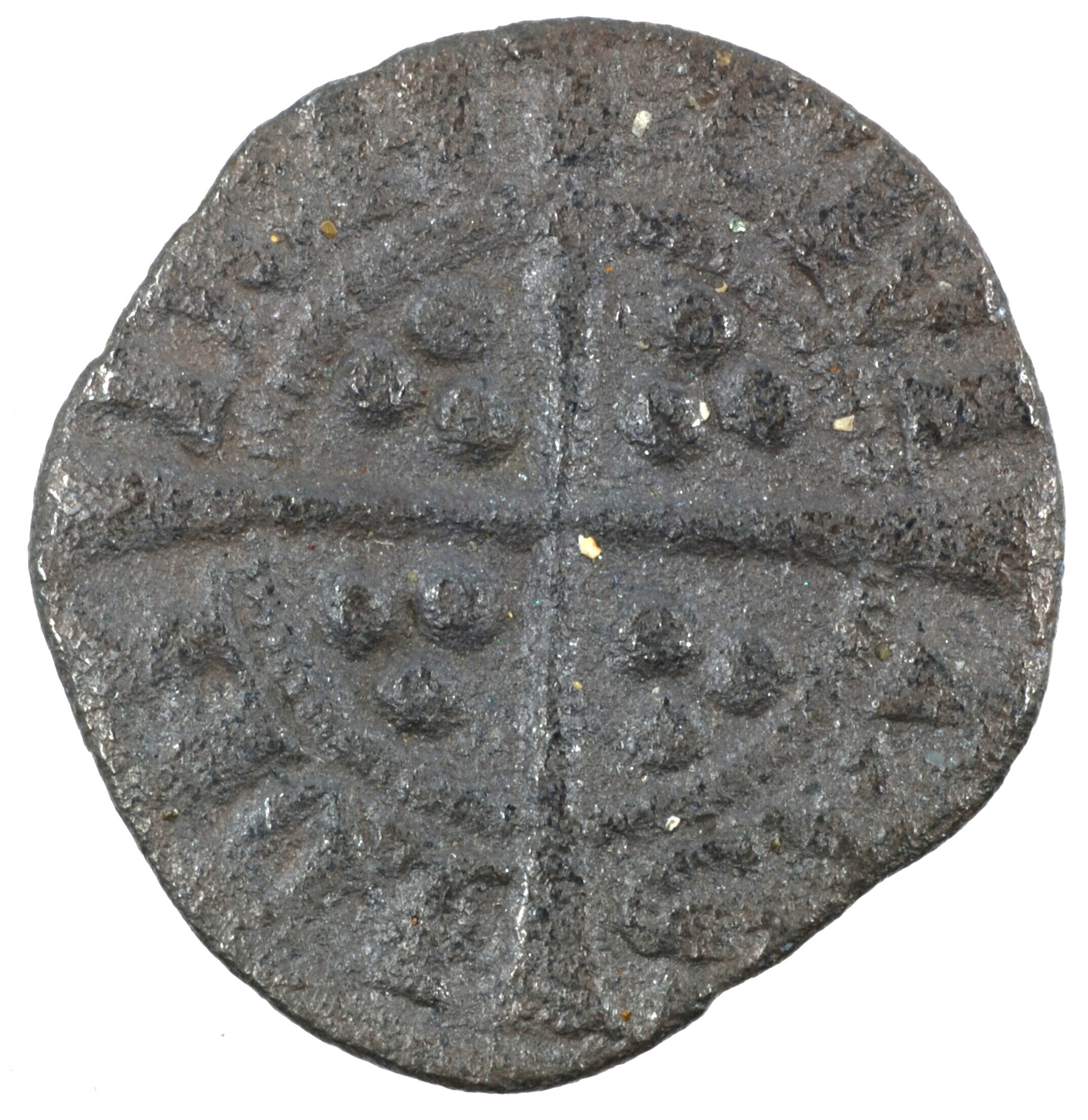 Penny; Engeland; Edward I (1272-1307); vz.: aanziende buste met kroon binnen parelcirkel, met omschrift +EDW [R A[NGL] DNS HYB'; kz.: lang gevorkt kruis met in elke kwadrant drie punten binnen parelcirkel, met omschrift CIVI / TAS / LONDON; muntplaats: Londen; gewicht: 1.40 gram; referentie: Seaby 1383; NUMIS 1013741