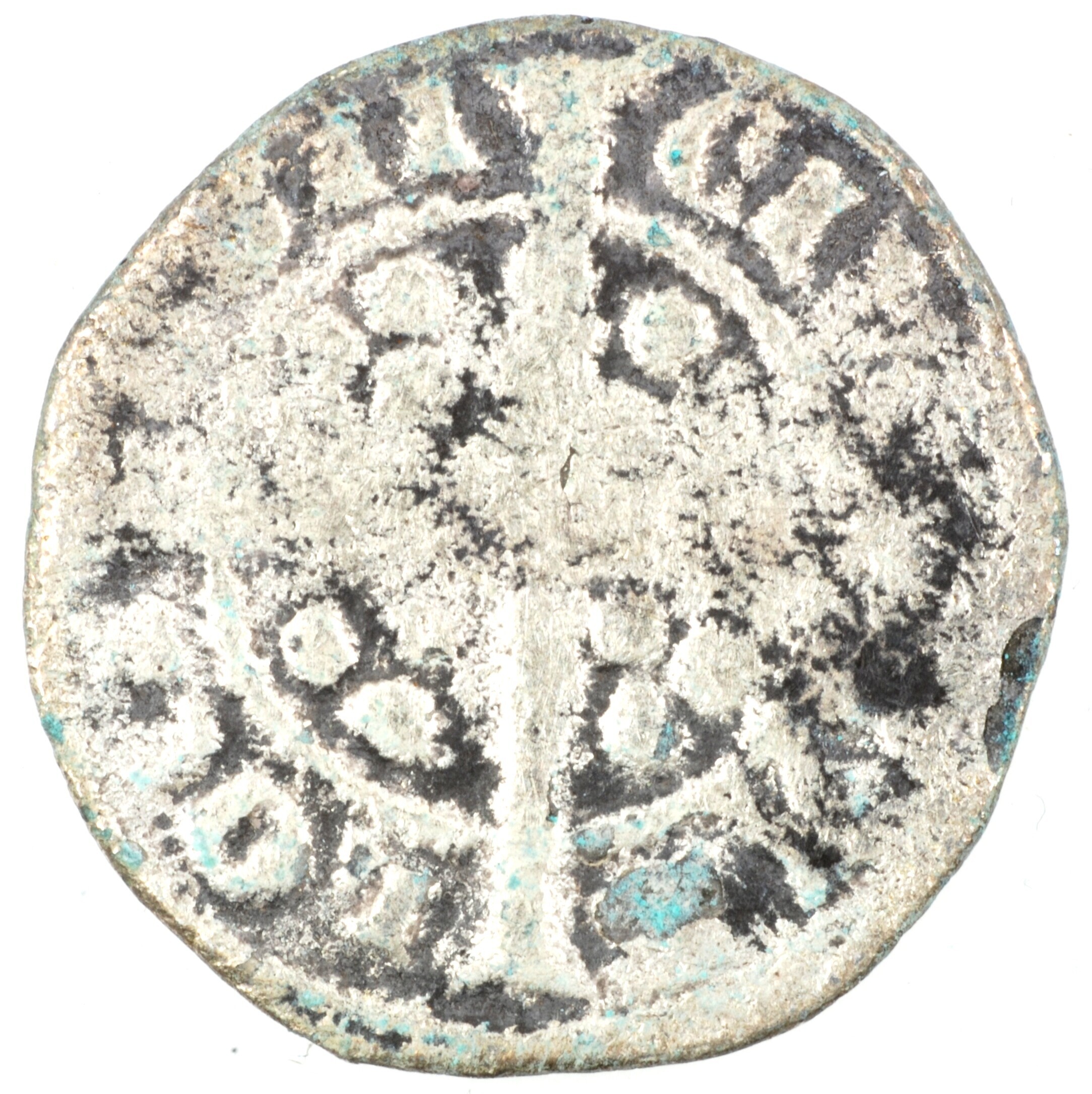 Penny; Engeland; Edward I (1272-1307); vz.: aanziende buste met kroon binnen parelcirkel, met omschrift +EDW R A[NGL] DNS H[YB]; kz.: lang gevorkt kruis met in elke kwadrant drie punten binnen parelcirkel, met omschrift CI[VI / TAS] / LON / [DO]N; muntplaats: Londen; gewicht: 1.28 gram; muntplaats: Seaby 1383 of 1384; NUMIS 1013747