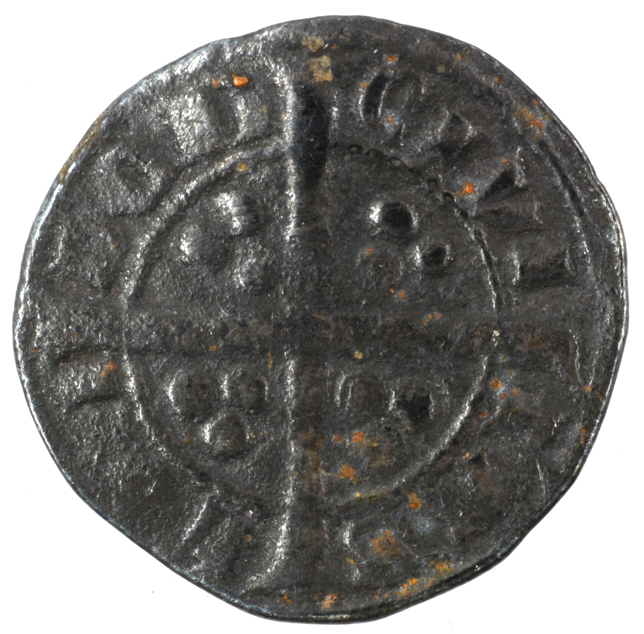 Penny; Engeland; Edward I (1272-1307); vz.: aanziende buste met kroon binnen parelcirkel, met omschrift +EDW R ANGL DNS HYB; kz.: lang gevorkt kruis met in elke kwadrant drie punten binnen parelcirkel, met omschrift CIVI / TAS / LON / DON; muntplaats: Londen; gewicht: 1.16 gram; referentie: Seaby 1384; NUMIS 1013744