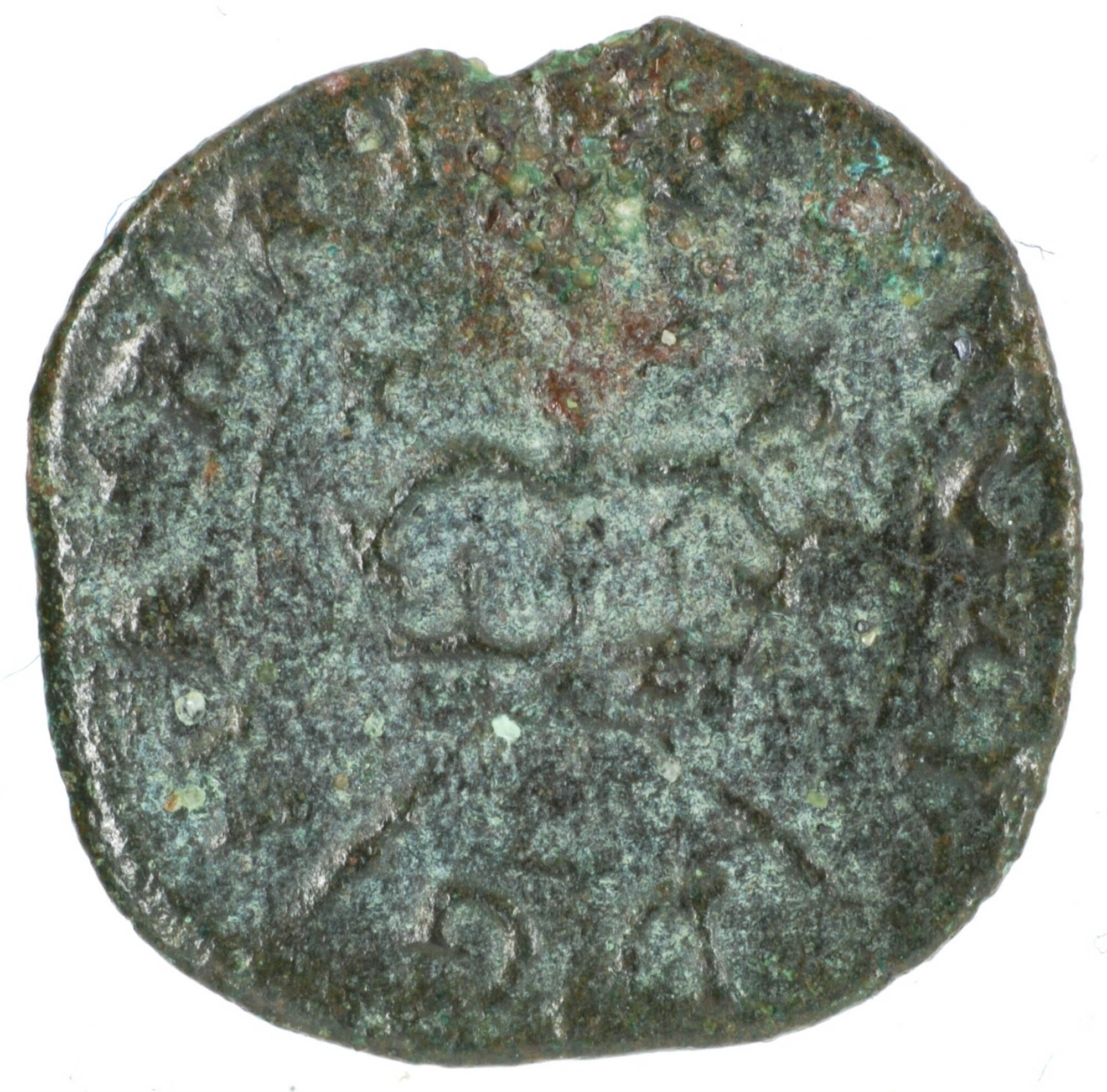 Rose farthing; Engeland; Karel I (1625-1649); vz.: gekruiste scepters door een kroon, scepters binnen parelcirkel, met omschrift [+]•C[A]ROLV[S] / D G / MAG•BRI[T]; gekroond tudorroos binnen parelcirkel, met omschrift: FRA•ET•HI•REX; muntplaats: Londen; gewicht: 0.68 gram; referentie: Seaby 3202 t/m 3206; NUMIS 1013864?