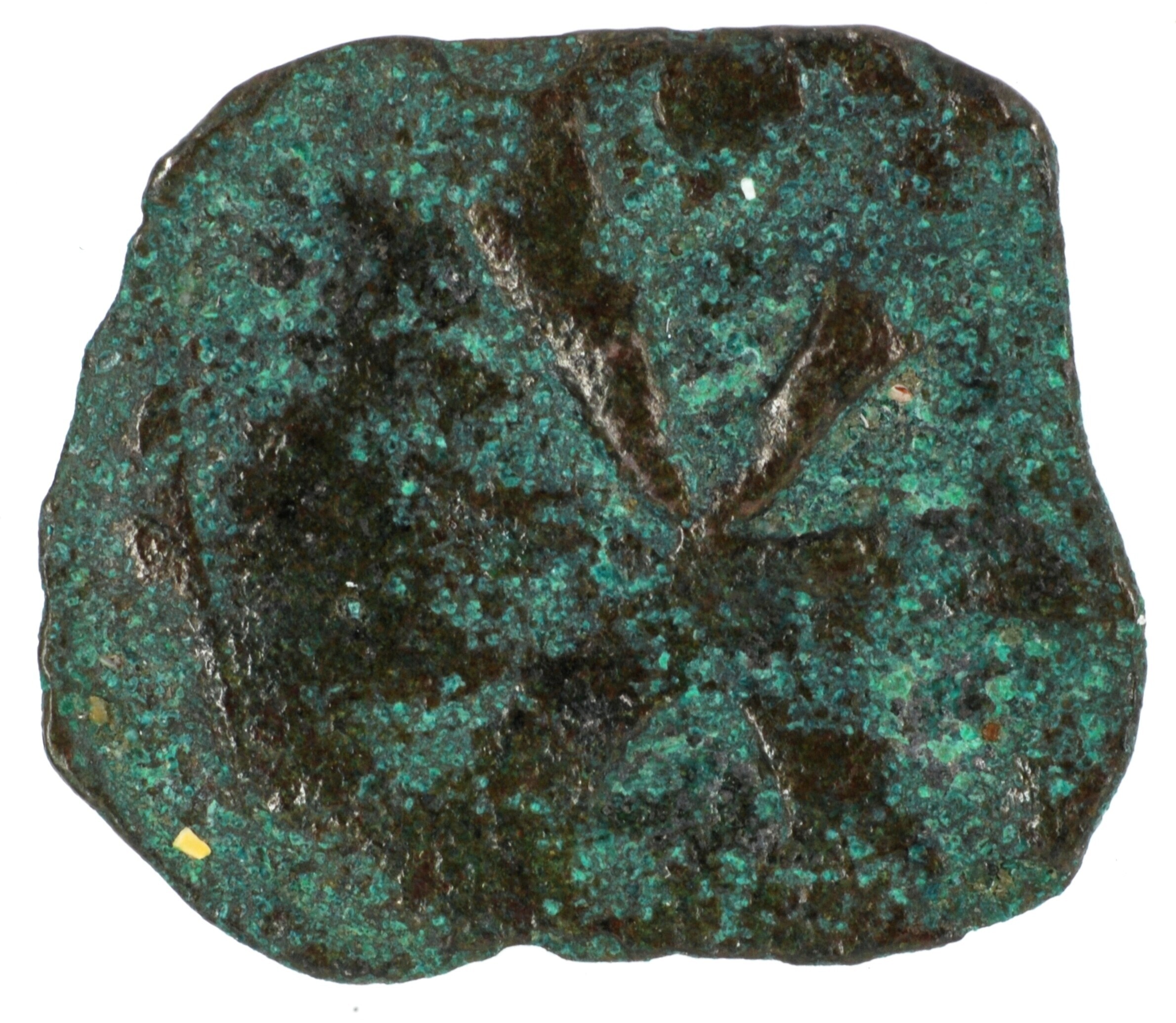 Kupferpenninge; Denemarken; Christopher II (1319-1332); vz: grote R waarin een punt; kz.: zespuntige ster; muntplaats: Roskilde; gewicht: 0.51 gram; referentie: Galster 72