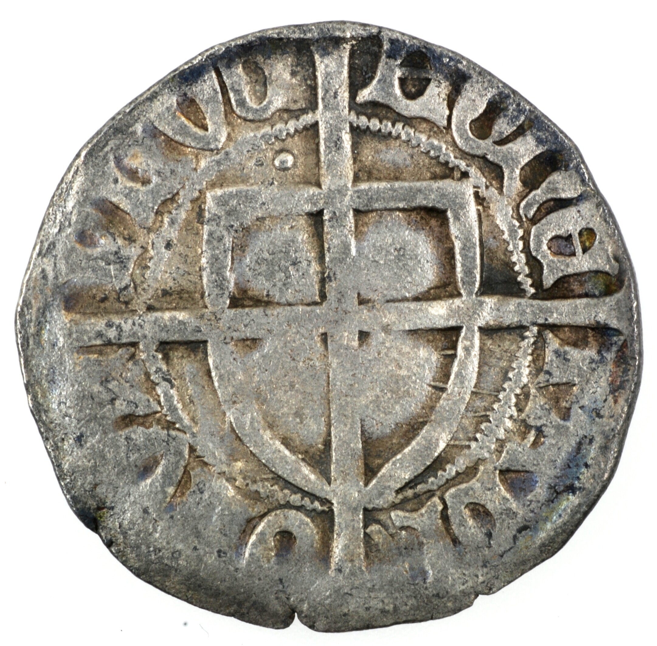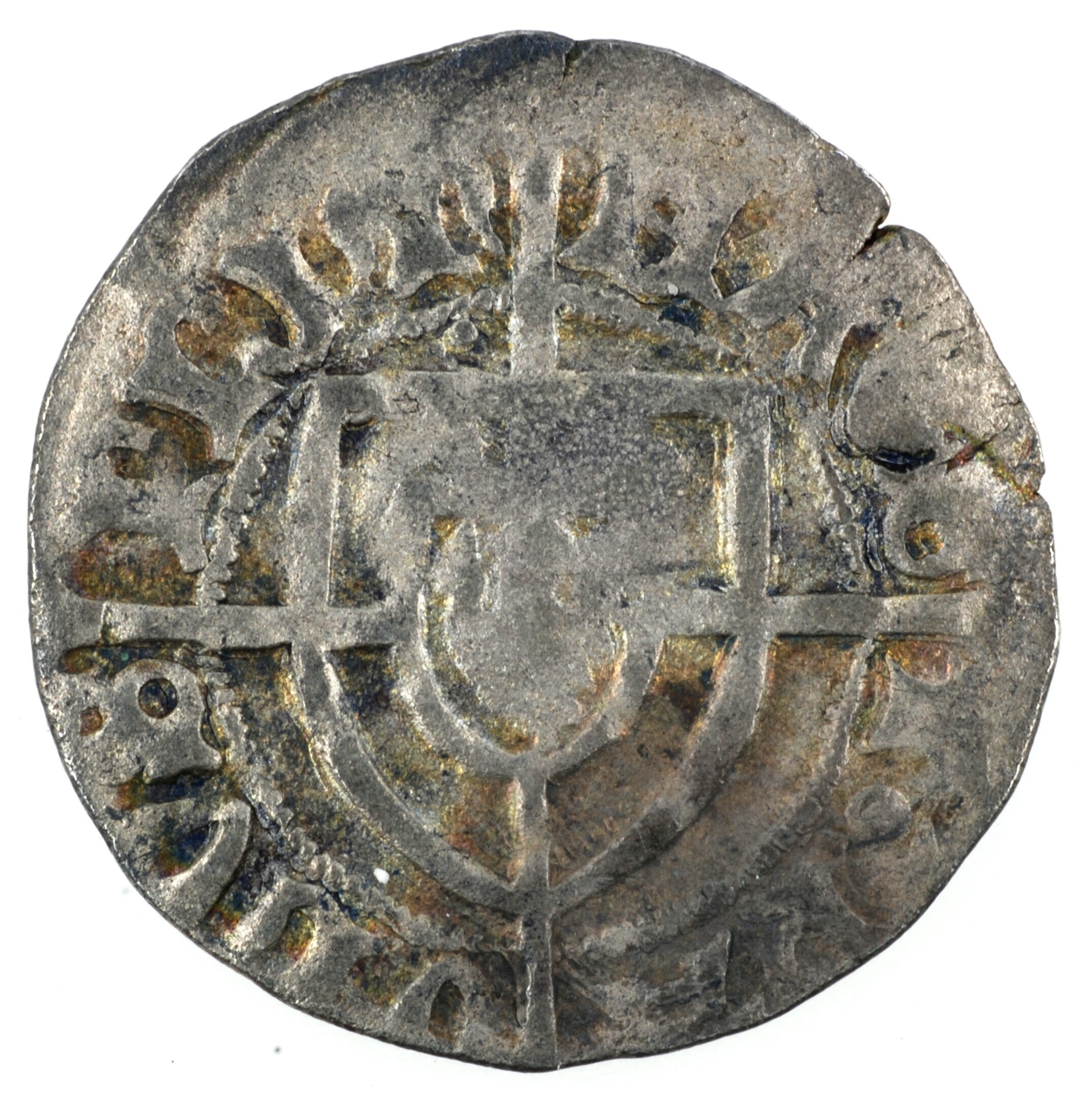 Schilling; Polen; Duitse Orde in Pruisen; Paul von Rusdorf (1422-1441); vz.: lang gevoet kruis met wapenschild met adelaar in het hart met punt boven schild in kwadrant linksboven, met omschrift MAGS / T.PA / VLVS / PRIM; kz.: lang gevoet kruis met wapenschild in hart met punt boven schild in kwadrant linksboven binnen parelcirkel met ...