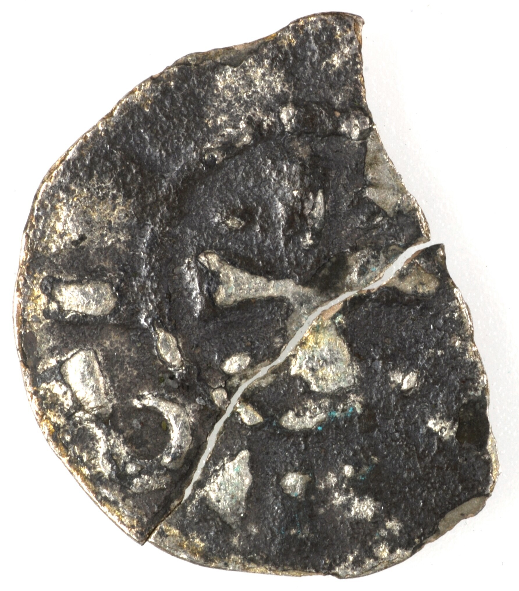Penning; Friesland; Wichmann III (993-1016); vz.: pseudo-tekst [E]RRR[I] / DOR[ISI]; kz.: kruis met bolletjes in de kwadranten binnen parelcirkel, met omschrift V[I]G[MAN'COM]; muntplaats: onbekend, gewicht: 0.44 gram; referentie: Ilisch 20.2, Dannenberg 1229
