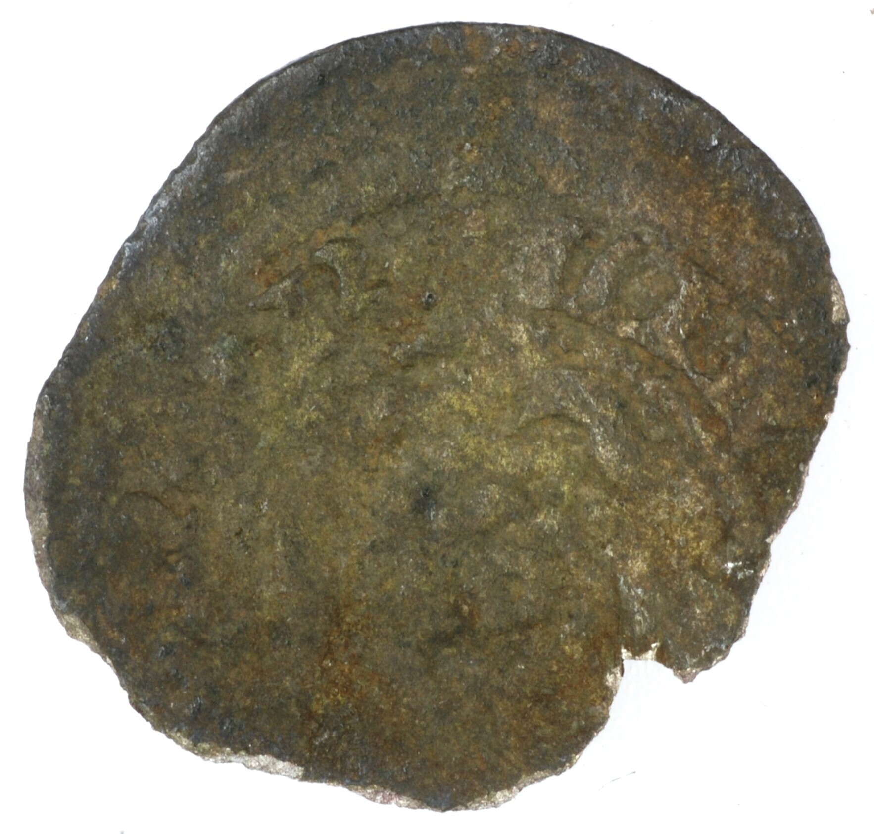 Pfennig; Duitsland; Limburg; Dirk V (1401-1443); vz.: vorst met zwaard en wapen met leeuw op borst binnen parelcirkel, met omschrift: [(ster) DIDERICH (ster) GREV]E (ster); kz.: roos van Limburg binnen parelcirkel, met omschrift: [(ster) MONETA+] NO' RELIN[CHVS]; muntplaats: Rellinghausen; gewicht: 0.32 gram; referentie: Berghaus/Spiegel 49c