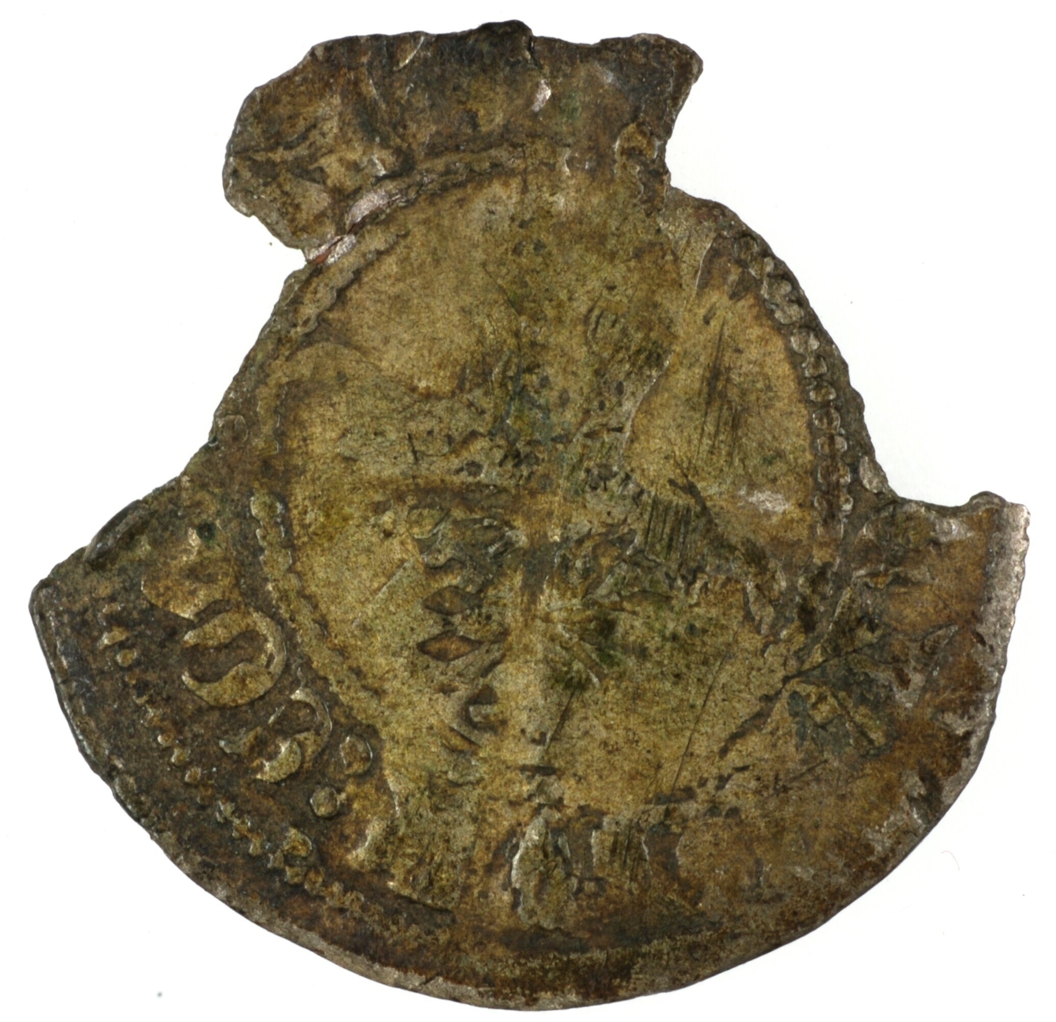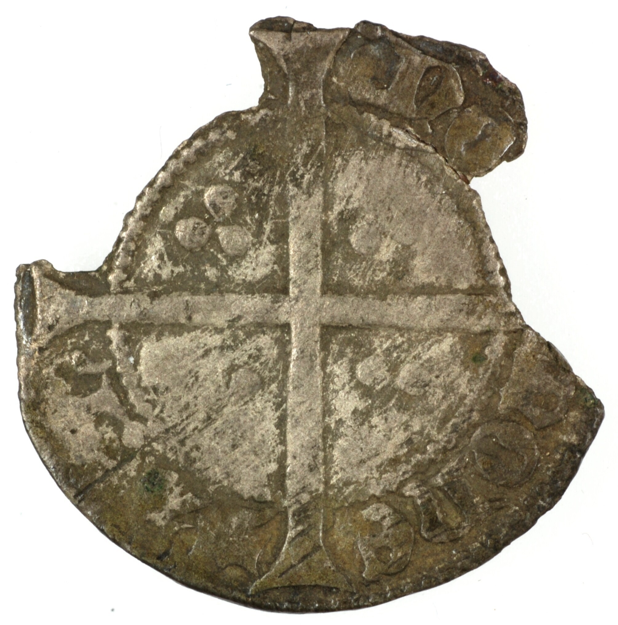 Kwart groot; Holland Graafschap (1049-1581); Albrecht van Beieren (1389-1404); vz.: schuin geplaats gevierendeeld wapenschild Beieren-Holland binnen parelcirkel, met omschrift [ALBE]RT:DVX:COM[:HOL]A ; kz. lang gevoet kruis met in de kwadranten drie punten binnen parelcirkel, met omschrift NO[VA] / MONET / TA:[H / OLLA]; muntplaats: Dordrecht; gewicht: 0.43 gram; zeer zeldzaam; referentie: Grolle 18.4.4a